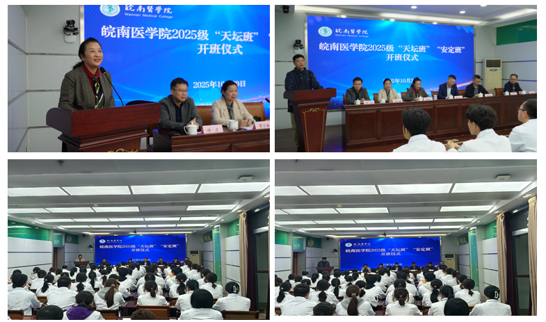 开班仪式上,教务处处长黄月娥解读《皖南医学院天坛班、安定班微专业建设实施方案(试行)》,详细介绍了“3+1+X”培养模式、特色培养和学业管理。临床医学院院长许力详细介绍了学校开设“天坛班”“安定班”的背景、目的、意义、选拔机制及管理。2025级“天坛班”高誉宁和“安定班”韦也娜同学分别作表态发言。
