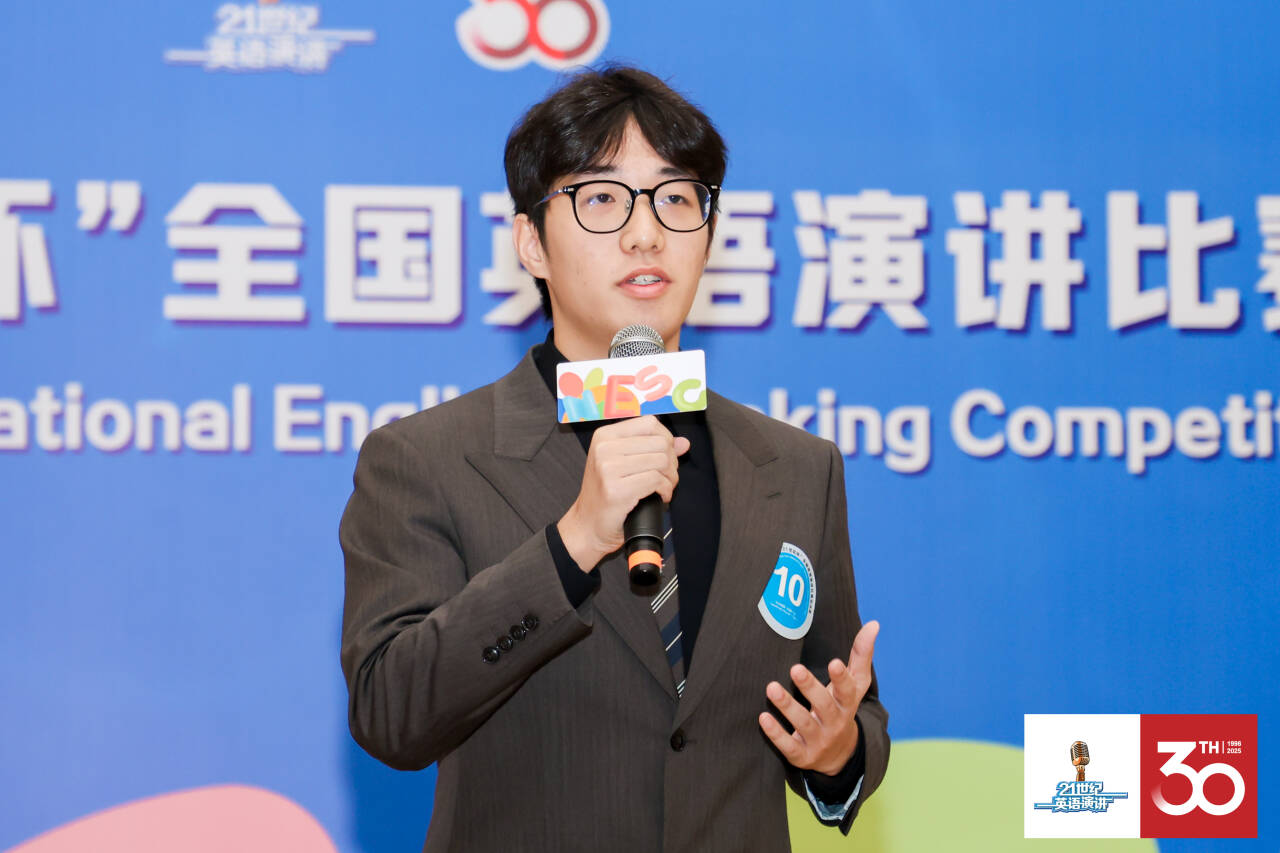 本次大赛由中国日报社指导、21世纪报社主办,自2025年2月启动以来,大赛共吸引全国33个地区、近2000所学校的20余万名选手参与。经过校赛、省赛的层层选拔,350名选手脱颖而出,以安徽省一等奖的好成绩晋级全国决赛。决赛现场,在“1对1即兴演讲”中,选手围绕“当代大学生如何践行‘慎独’”这一命题给出了多维度的解读,以鲜活的案例和深刻的思辨,展现了新时代青年对独处自律与自我修养的价值追求;在定题演讲中,选手紧扣“Living within and beyond the 21st century”(“立足21世纪,放眼未来”)这一主题,探讨当代青年如何与人工智能、数字浪潮等共生,以及展望如何超越与引领。刘启航或引经据典、或结合切身体验阐释,表达流畅、台风稳健,充分彰显了皖医学子的综合素养、家国情怀与责任担当。