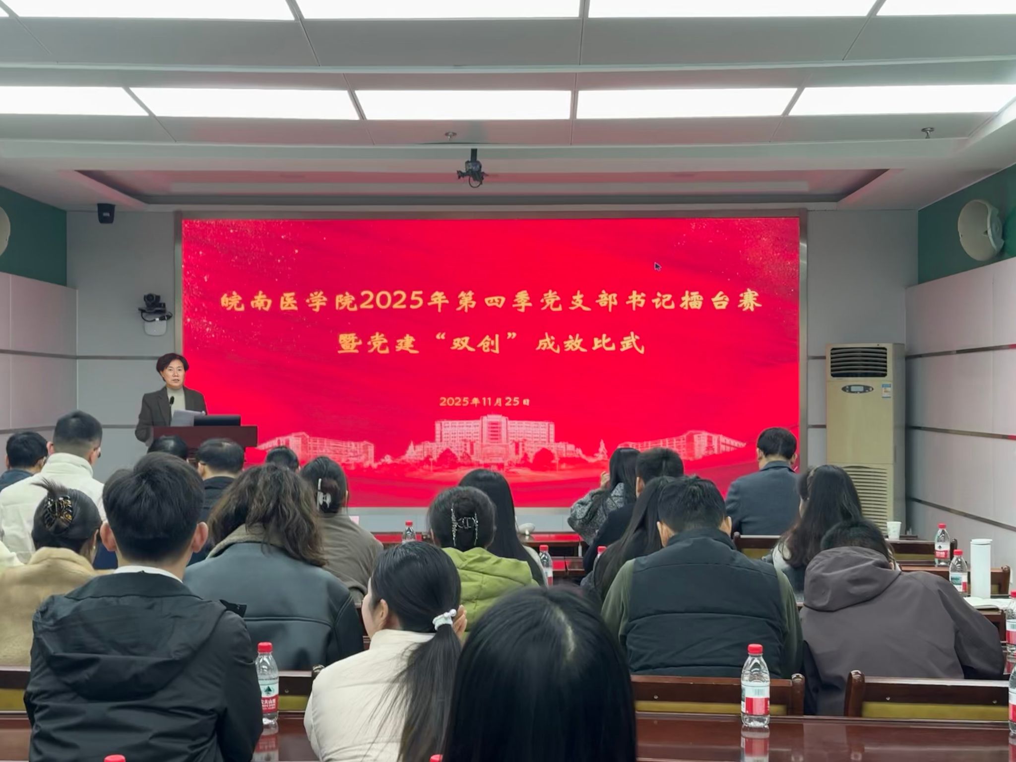 为深入学习贯彻党的二十届四中全会精神,推动基层党组织全面进步、全面过硬,11月25日下午,我校在图书馆十楼视频会议室举办2025年第四季度党支部书记擂台赛暨党建“双创”成效比武。校党委副书记贾贤燕出席活动。