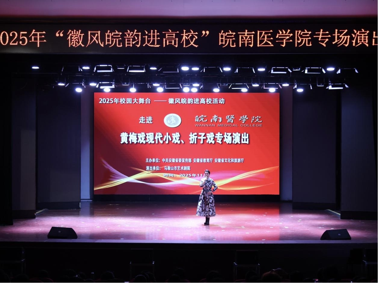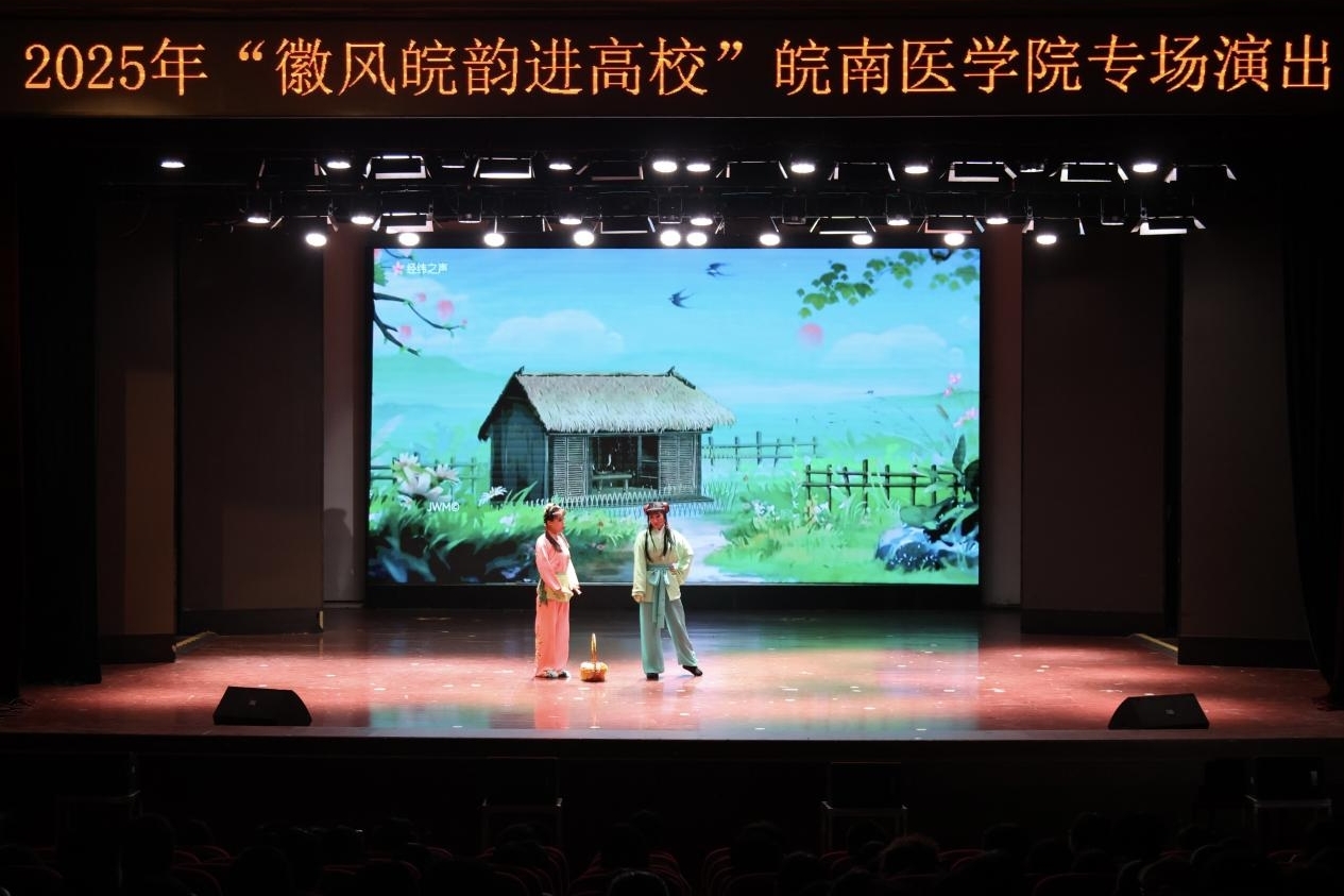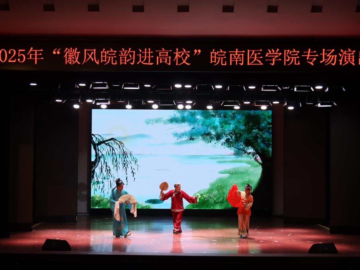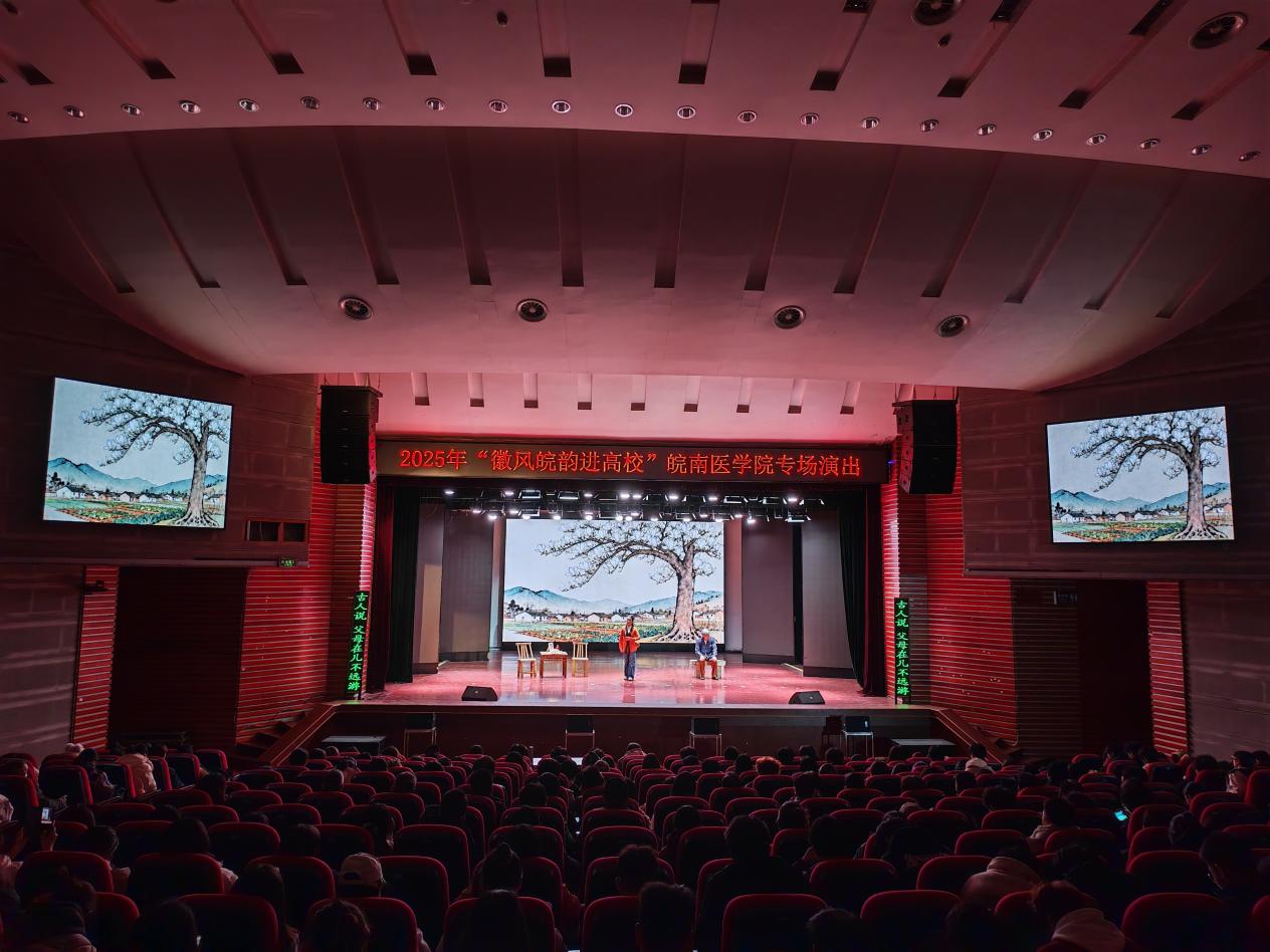 徽韵润医心,文脉续仁途。11月26日下午,由中共安徽省委宣传部、省教育厅、省文化和旅游厅主办的“校园大舞台——徽风皖韵进高校”活动,在滨江校区北区大学生活动中心礼堂上演。马鞍山市艺术剧院的艺术家们为我校八百余名师生带来一场沉浸式的黄梅戏文化盛宴。
