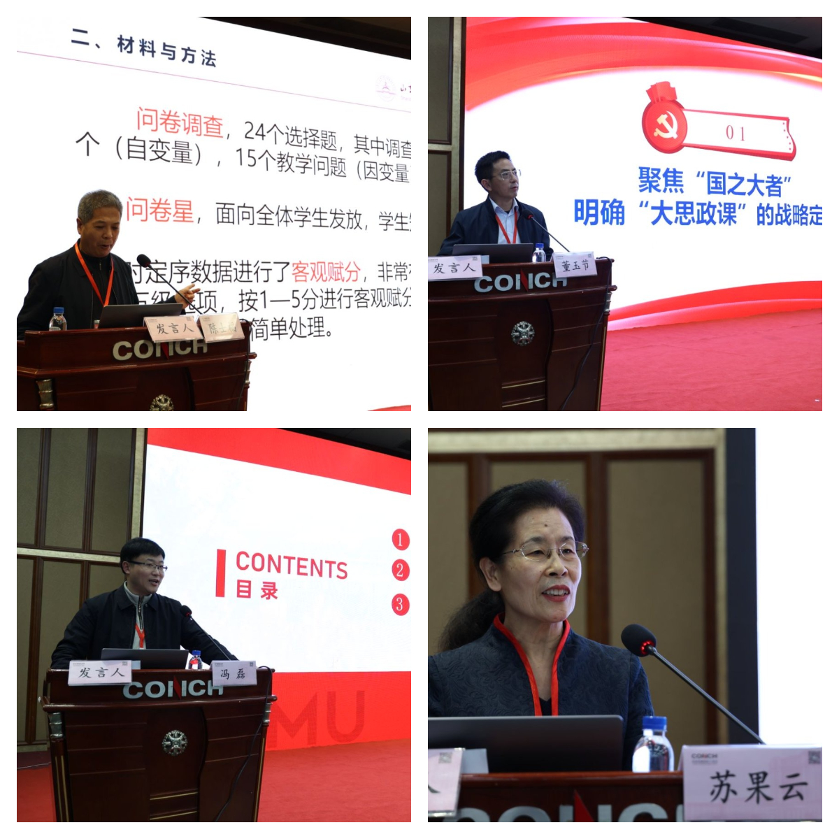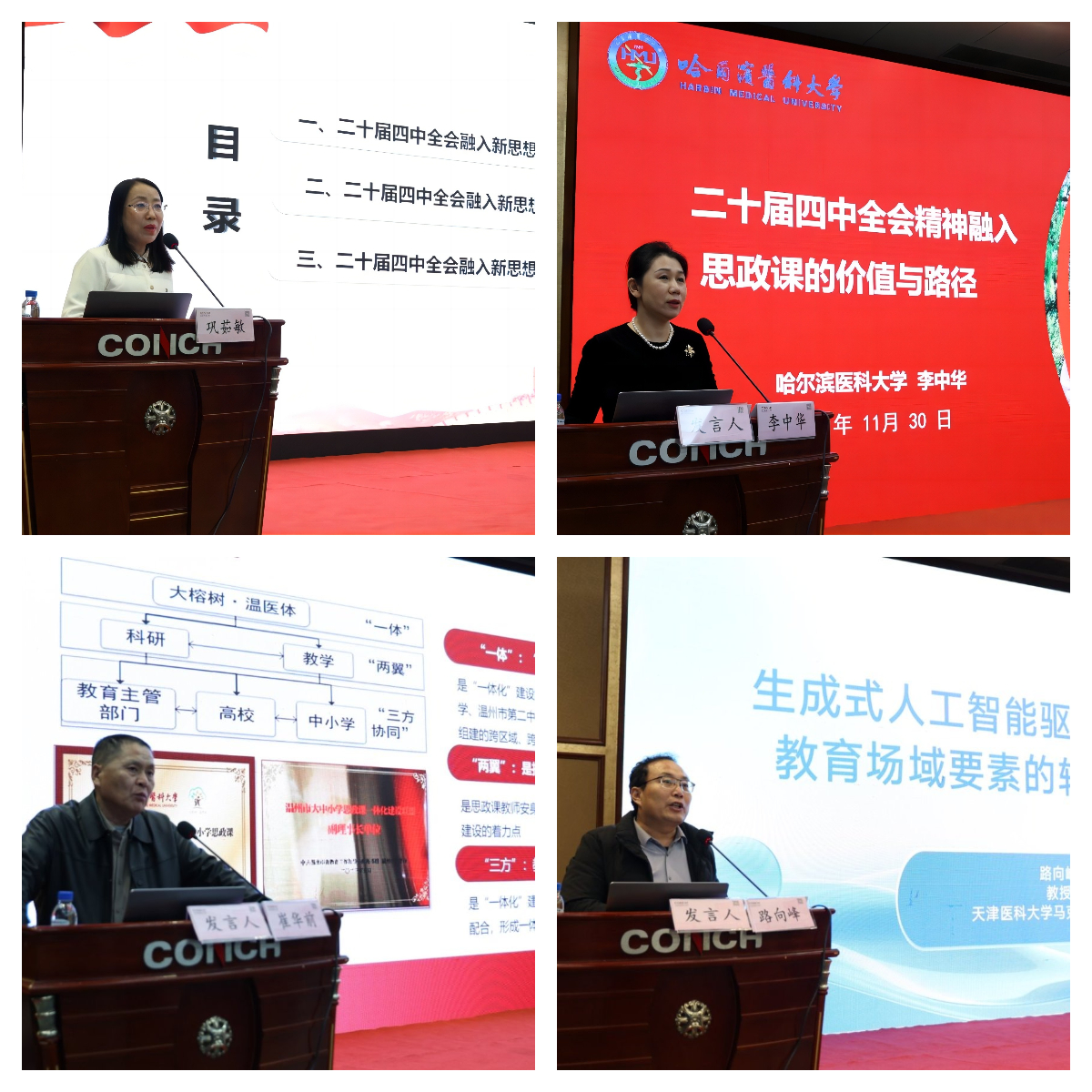 当日下午,会议设四个平行分论坛,分别围绕“红医精神融入思政教学”“大思政课一体化建设”“人工智能与思政教育创新”“医学人文与德育协同”等主题开展研讨。各论坛汇报精彩、讨论热烈,既有理论探索也有实践案例分享,形成了一批具有启发性的成果。分论坛结束后,福建医科大学吴任慰教授、安徽医科大学余立教授、哈尔滨医科大学柏宁教授、右江民族医学院曾友副教授四位专家分别进行学术总结,提炼观点、凝练共识,为后续研究与实践提供方向指引。