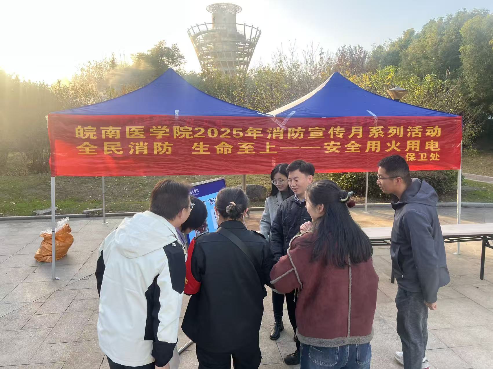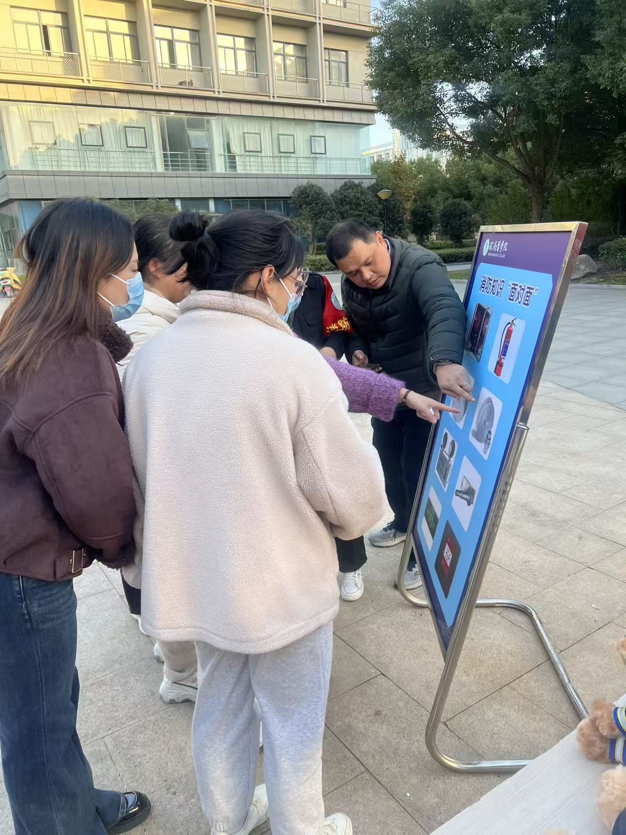 举办“识风险、懂预防”科普教育。11月14日,学校联合弋江区消防救援大队在滨江校区(北区)开展消防安全知识问答“面对面”活动,消防救援大队2名经验丰富的消防员现场为师生答疑解惑。通过图文展板、语音播报等形式,生动展示宿舍、实验室等场所的火灾风险点及预防措施,吸引大批师生驻足学习。在互动问答环节,消防员围绕消防设施设备使用、应急逃生技巧等内容抛出问题,“宿舍电器突然起火,第一步该做什么?”“逃生时遇到烟雾弥漫,应该弯腰低姿还是直立奔跑?”师生们踊跃抢答,答对者获得定制的消防安全纪念品,现场气氛热烈。