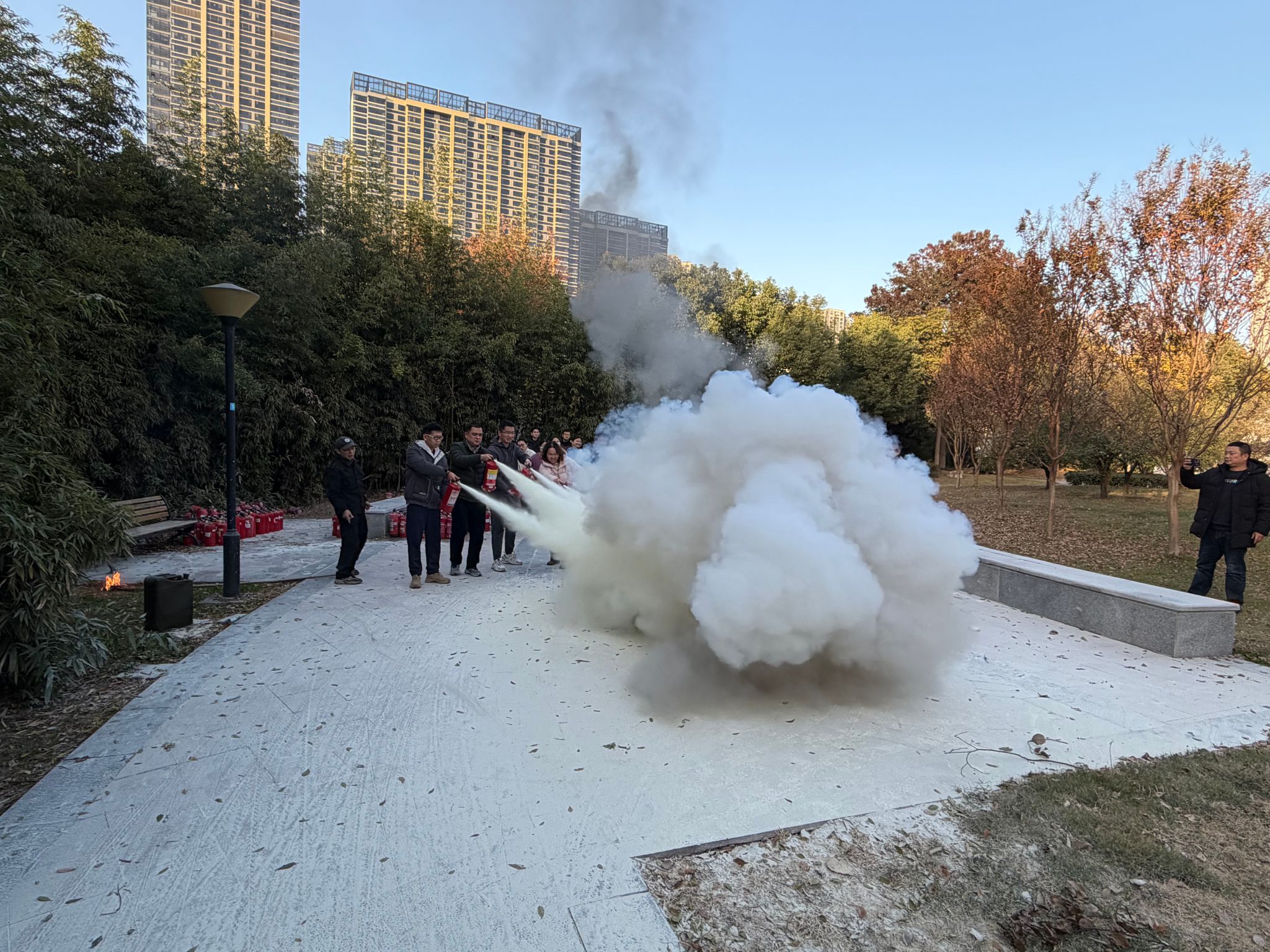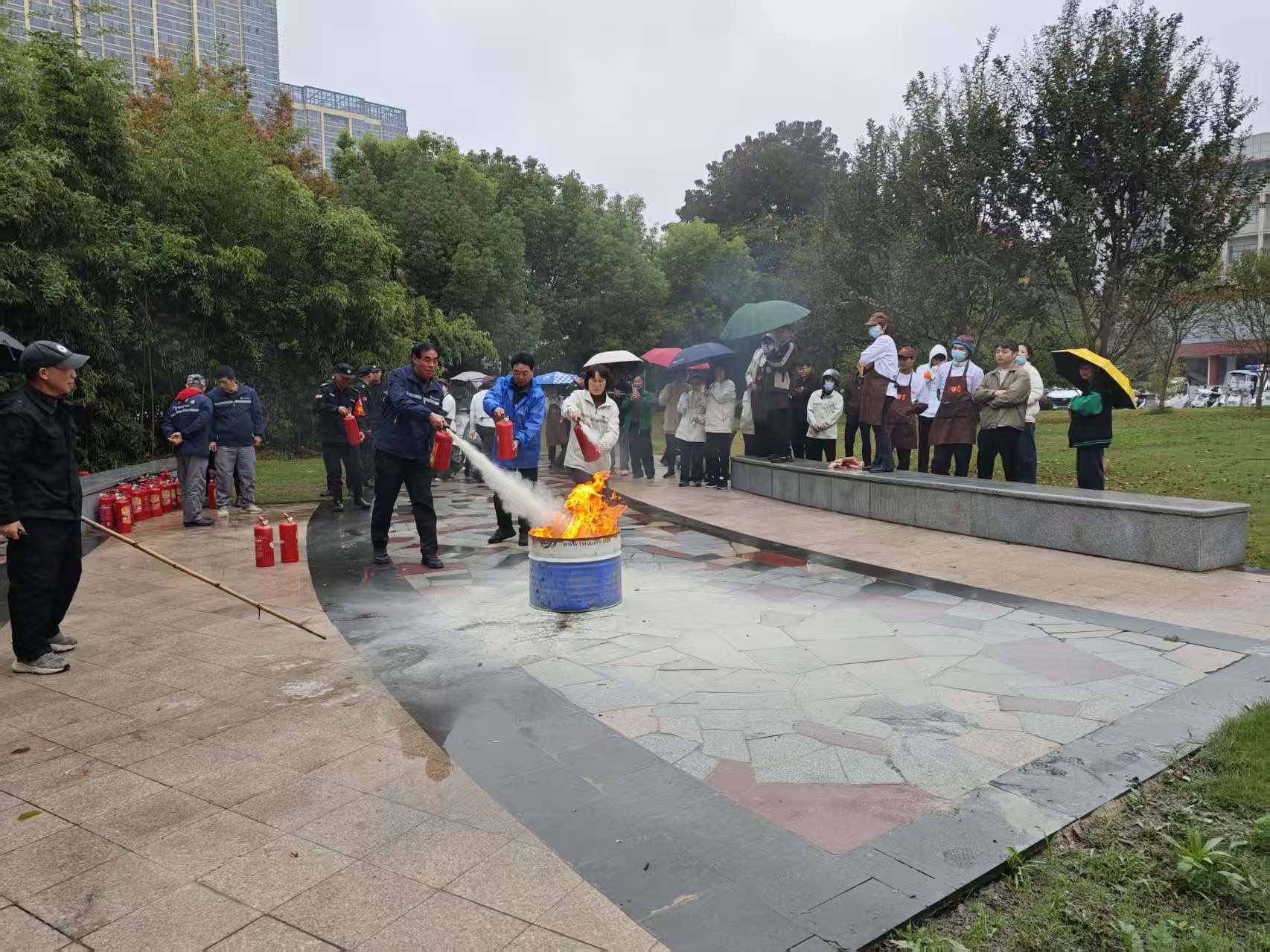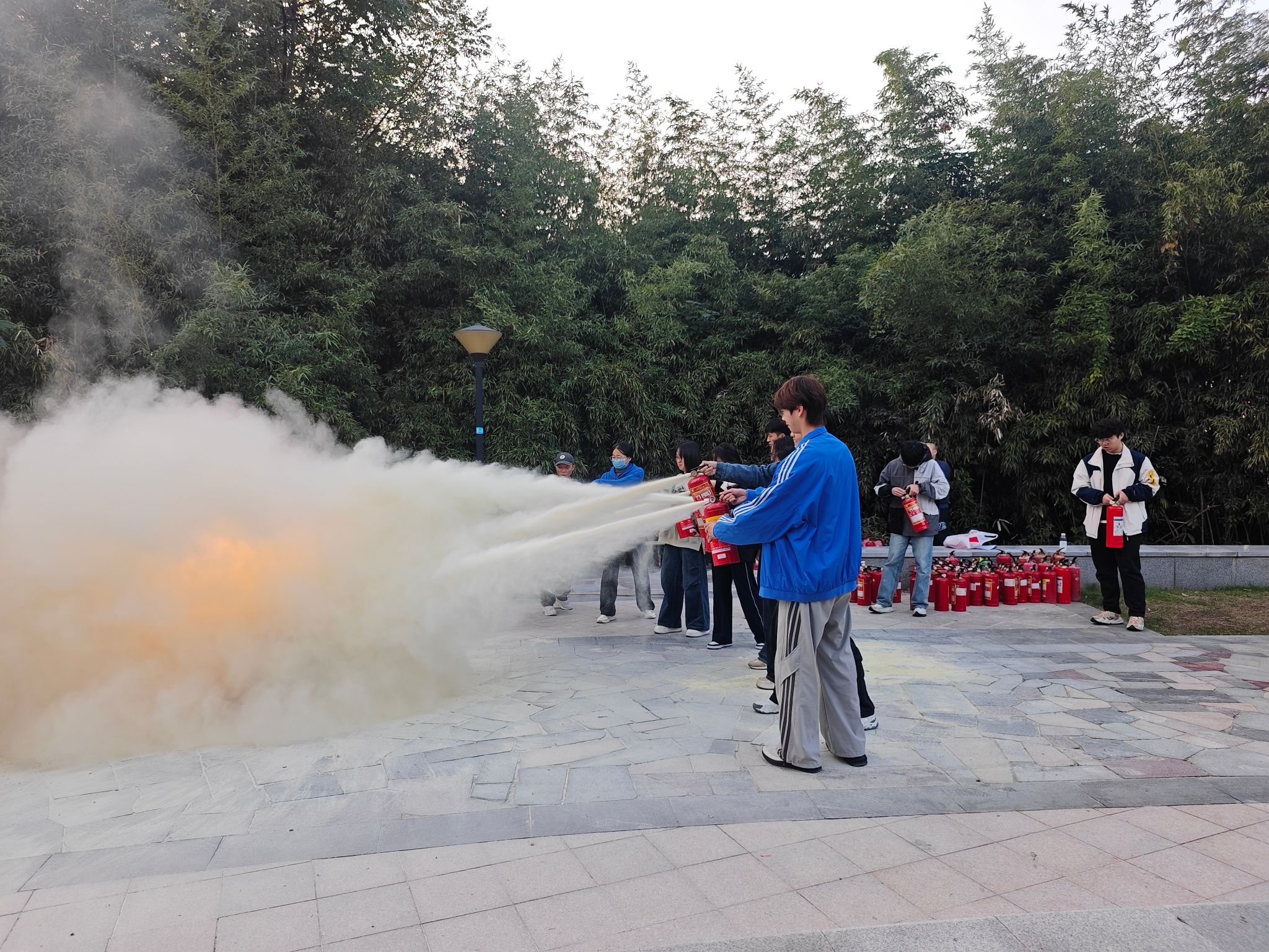 开展“真灭火、真动作”实操实训。11月11日至 28日,学校在滨江校区(北区)4号实验楼西广场分6场次组织开展灭火实战演练,机关党委教职工、二级学院师生代表、宿管人员、食堂员工、安保队伍等共计500余人参与。演练现场,保卫处工作人员结合校园火灾高发场景,详细讲解大功率电器违规使用、线路老化、杂物堆积等常见火灾隐患的识别方法,以及日常用火、用电、用气的安全规范;针对干粉灭火器的“提、拔、握、压”使用步骤,指导每一位参与者亲手操作。在模拟火灾现场,大家依次拿起灭火器对准火焰根部精准喷射,成功扑灭模拟火源,让参与师生直观感受初期火灾的处置流程。