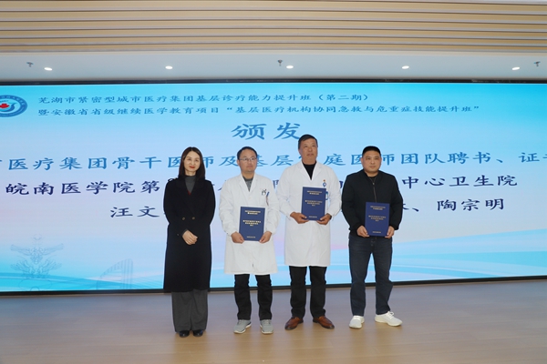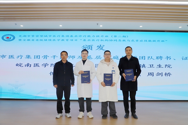 为深入推进芜湖市紧密型城市医疗集团建设,切实提升基层医疗服务能力,12月5日至6日,由芜湖市第四城市医疗集团、第二附属医院主办,芜湖市鸠江区人民医院(皖医二附院鸠江分院)承办的骨干医师与基层医师结对签约仪式暨基层诊疗能力提升班圆满举行。
