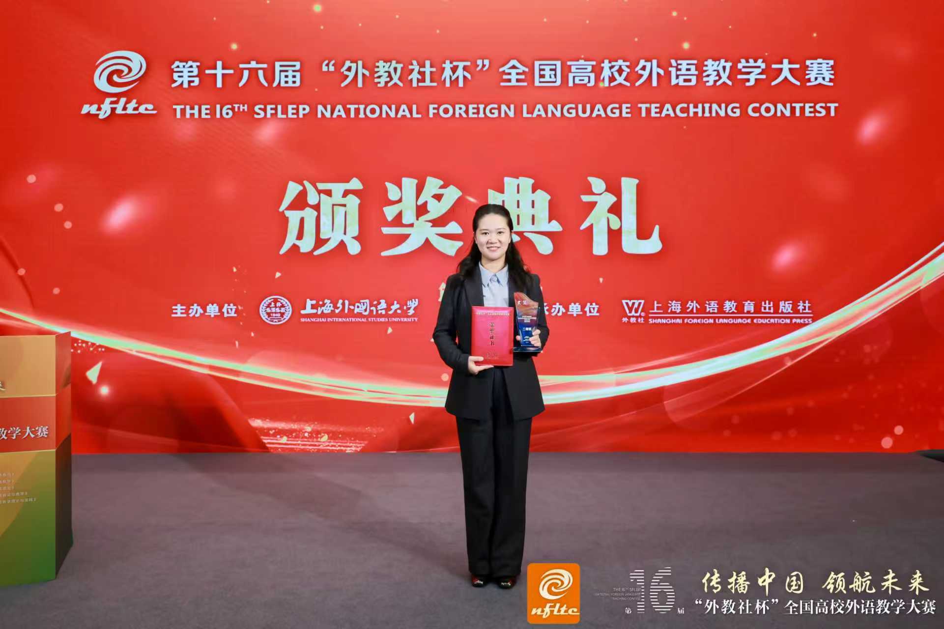 12月7日下午,第十六届“外教社杯”全国高校外语教学大赛全国总决赛在上海圆满落幕。我校公共基础学院外语教研室高洁老师于11月斩获安徽省赛第一名后代表安徽省征战全国决赛和总决赛,最终斩获视听说课组第五名,不仅创造了我校在该项赛事的历史最佳战绩,更刷新了安徽高校外语教师获奖的最高纪录,彰显了地方高校青年外语教师在全国教学舞台上的竞争力。