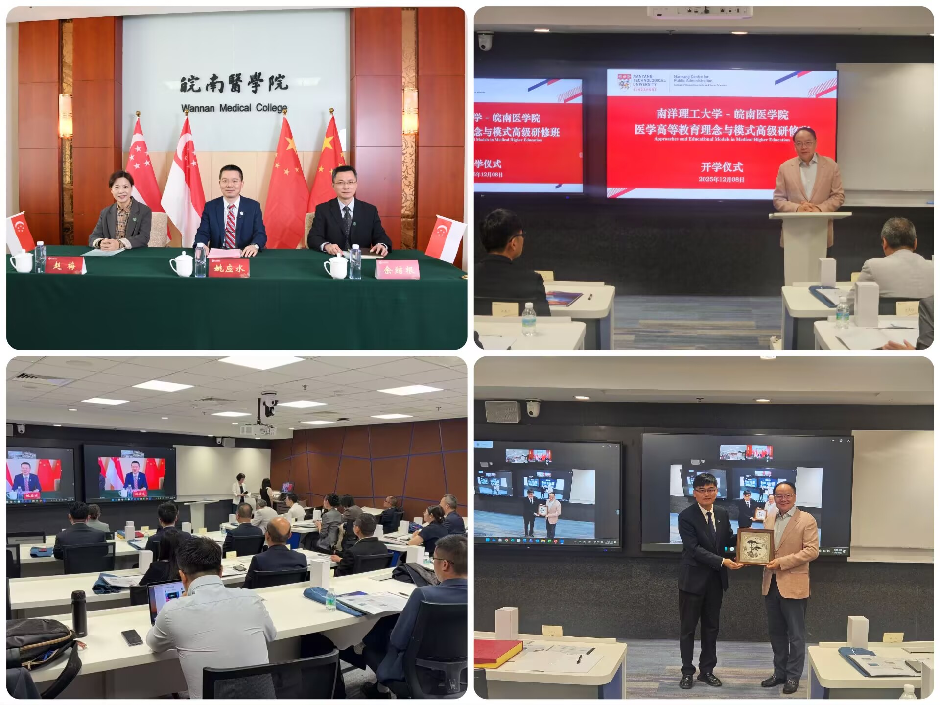12月8日,两校以线上线下相结合的形式成功举行研修班开班仪式。校党委副书记、院长姚应水,校党委常委、副院长余结根,南洋理工大学协理副校长刘宏出席仪式。姚应水在致辞中指出,此次培训是学校深化国际教育合作、提升师资队伍国际化水平的重要举措,希望参训教师珍惜学习机会,深入交流借鉴南洋理工大学在教育教学、科研管理方面的先进经验,为学校医学教育质量提升和人才培训工作注入新动能;也希望能以此次研修为纽带,推动两校在医学教育、科学研究、师资互访等领域开展更深层次、更广领域的交流合作。
