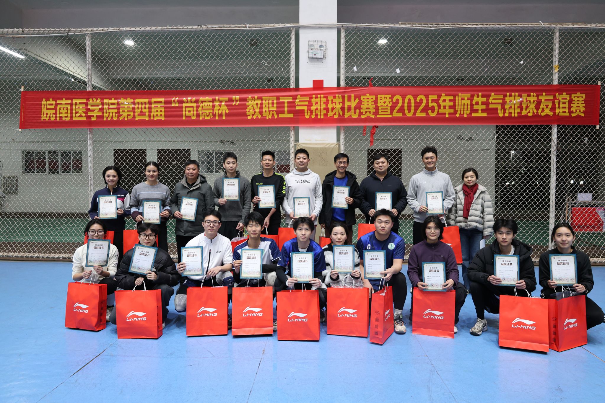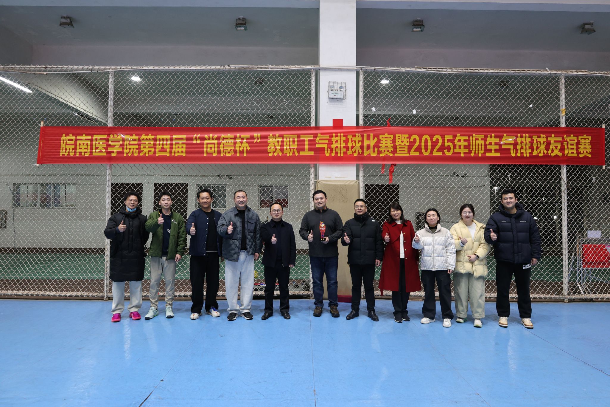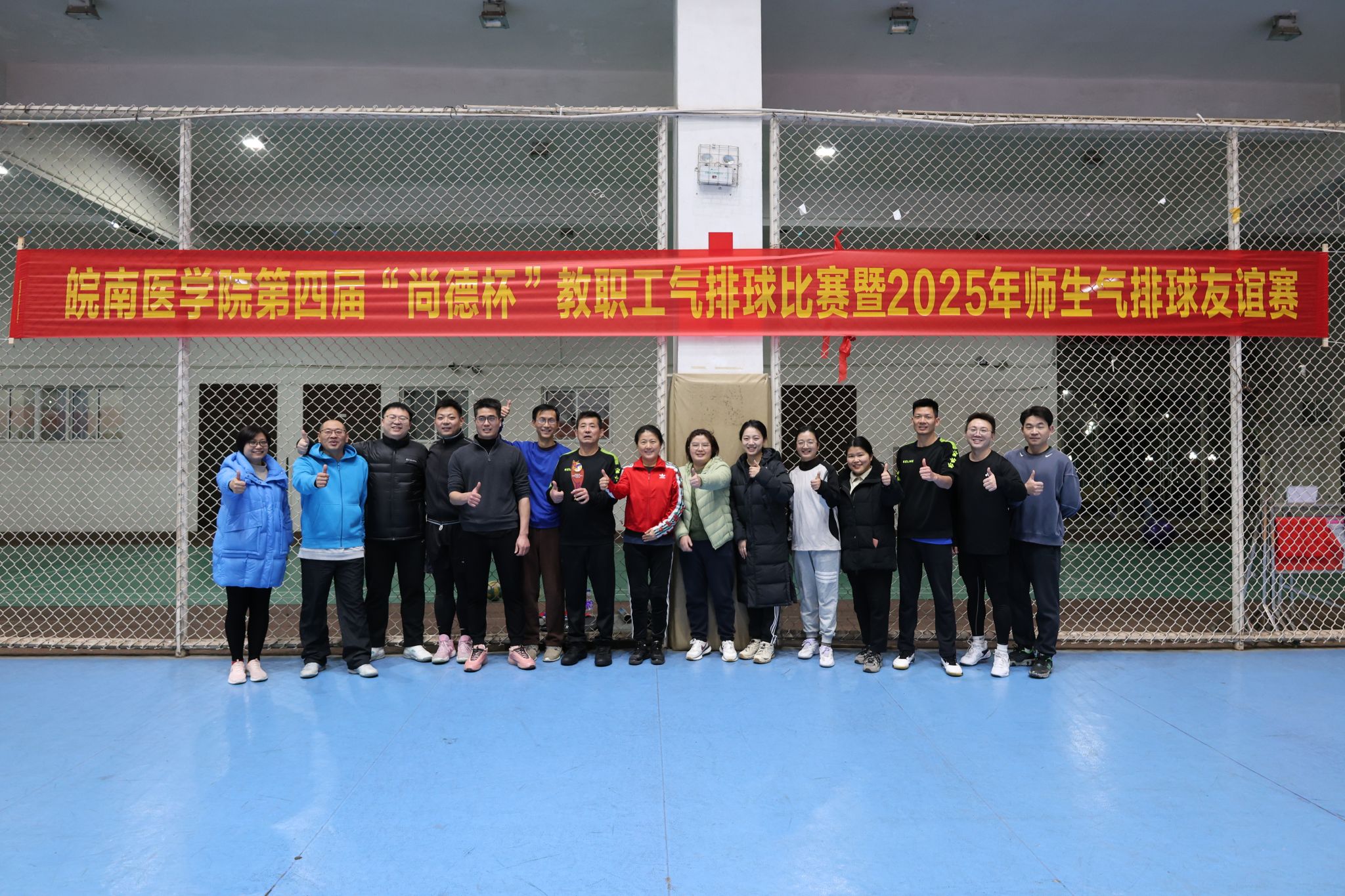 为丰富教职工文化生活,搭建师生跨课堂交流平台,12月15日至23日,皖南医学院第四届“尚德杯”教职工气排球比赛暨2025年师生气排球友谊赛在校体育馆成功举办。本届赛事吸引来自全校各分工会的13支教职工代表队和1支学生代表队共150余名选手踊跃参加,充分展现了我校师生团结拼搏、积极向上的精神风貌。