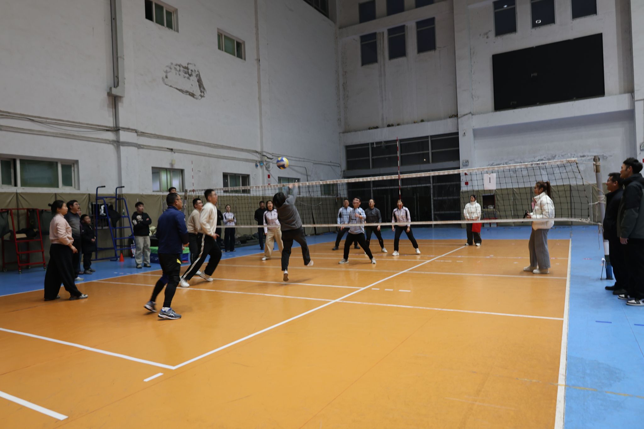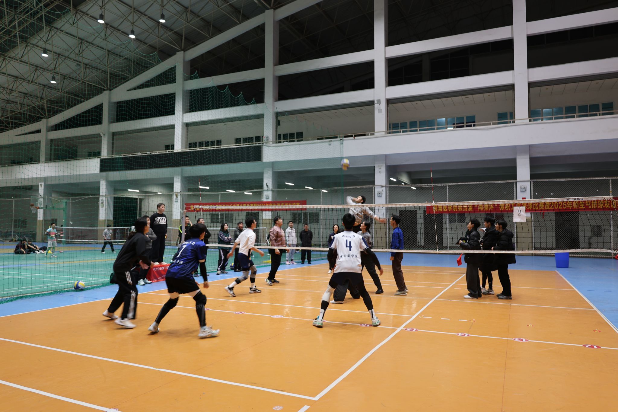 赛事期间特别举办了2025年师生气排球友谊赛。教工代表队与学生代表队精神抖擞、齐聚赛场,双方全力以赴、团结协作,在并肩拼搏中深化师生情谊,以体育竞技为载体拓宽教育维度,生动诠释了昂扬向上、永不言弃的体育精神。