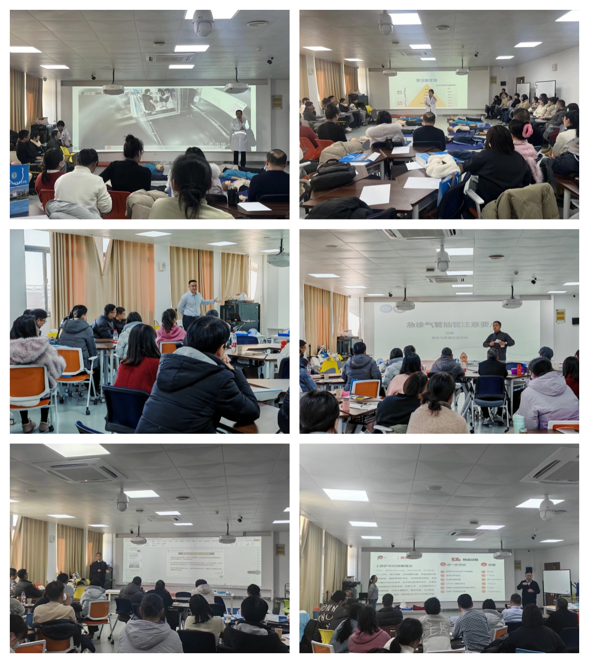 本次培训邀请第一、二附属医院,合肥、南京及杭州等地多年从事急诊与危重症急救、气道管理与氧疗、伤害预防与创伤修复等领域的6名知名专家授课。课程安排紧扣基层医疗实际需求,围绕临床一线常见急危重症的识别与处置、心脏骤停规范诊疗及创伤救治、急诊气道管理的临床决策流程及困难气道的处置等内容展开,课程设计覆盖基层临床高频场景与能力薄弱环节,兼具针对性与实用性,贴合基层刚需。专家授课灵活运用“场景再现+案例复盘+互动研讨+分组演练”等教学方式,助力学员们更新知识结构,强化临床思维和操作技能,进一步提升业务素质和诊疗能力。