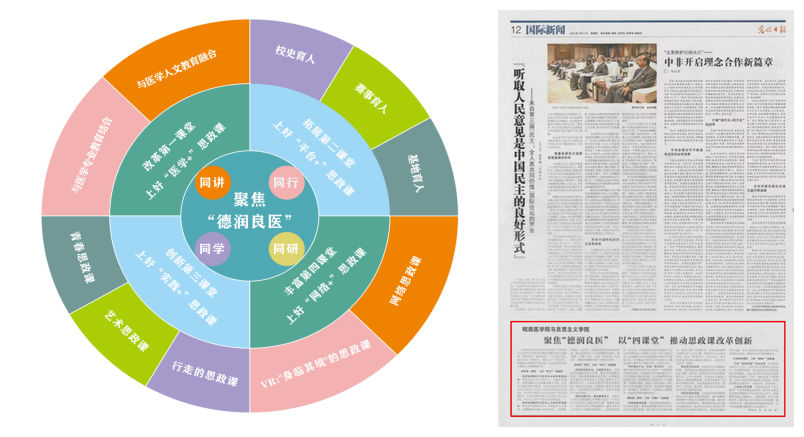 筑牢思政课堂主阵地。开好、办好、讲好思政课,充分发挥思政课主渠道作用,建成马克思主义学院虚拟仿真实验中心,构建以“习近平新时代中国特色社会主义思想概论”为核心的“6+1”思政课程群。创新思政教学形式,打造“行走的思政课”“场馆里的思政课”“青春思政课”“国旗下的思政课”等特色品牌。通过组织大学生讲思政课、大学生学习马克思主义理论成果大赛等活动,显著提升学生参与度。获批国家级“大思政课”实践教学基地,获思想政治教育教学省级教学成果奖一等奖1项,获大学生讲思政课展示活动、大学生学习马克思主义理论成果大赛、大学生微电影大赛省级奖项30项。构建“大思政”育人格局,打造“四维四同 德润良医”大思政育人体系并被《光明日报》《安徽教育》等主流媒体推广,形成可复制的经验模式。