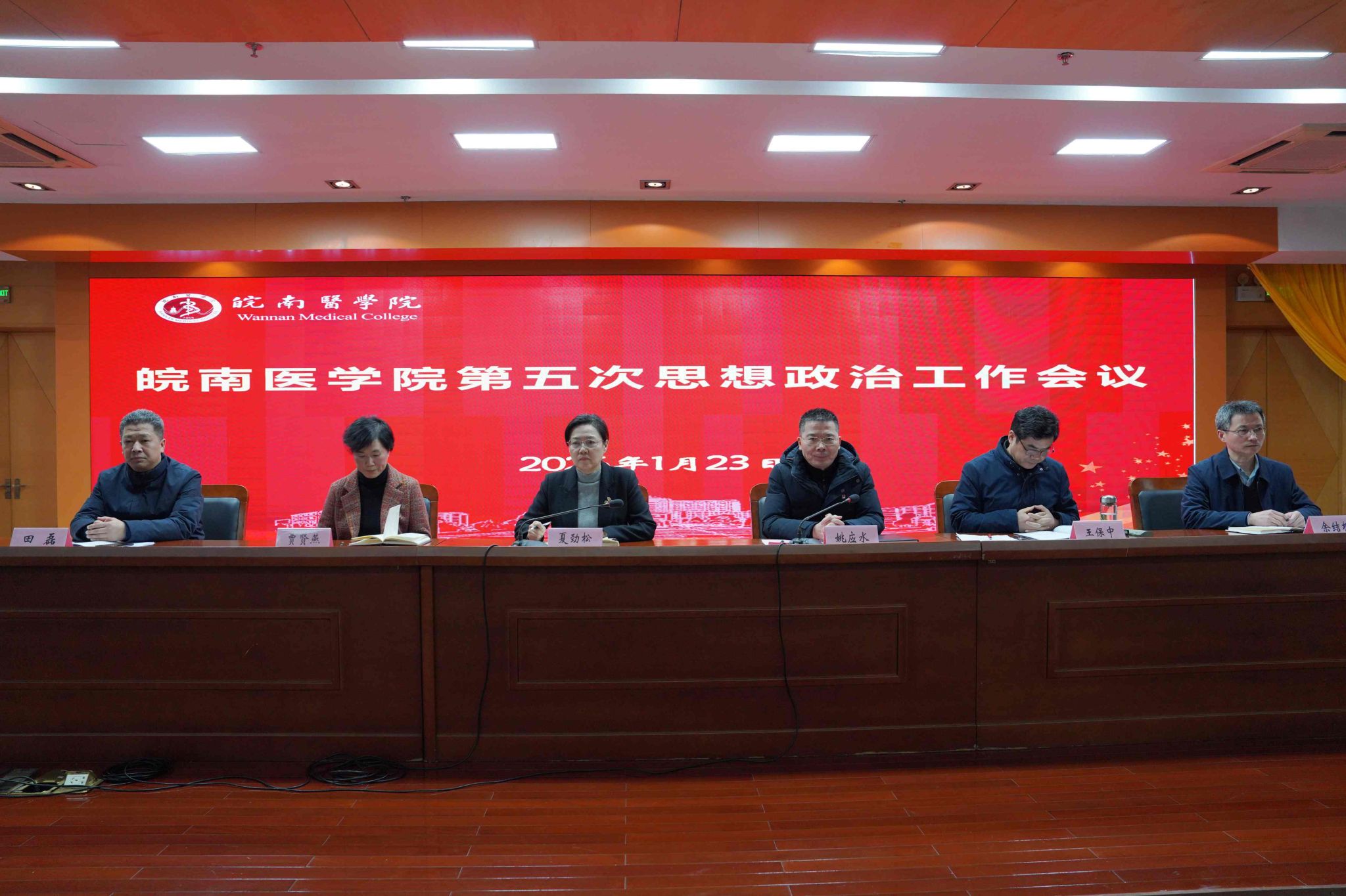 为深入学习贯彻习近平总书记关于思想政治工作的重要论述,全面落实《中国共产党思想政治工作条例》,推动学校思想政治工作高质量发展,1月23日,我校在图书信息楼学术报告厅召开第五次思想政治工作会议。党委书记夏劲松出席并讲话,党委副书记、院长姚应水,党委副书记贾贤燕,党委常委、纪委书记、监察专员王保中,党委常委、副院长田磊,党委常委、副院长余结根出席会议。