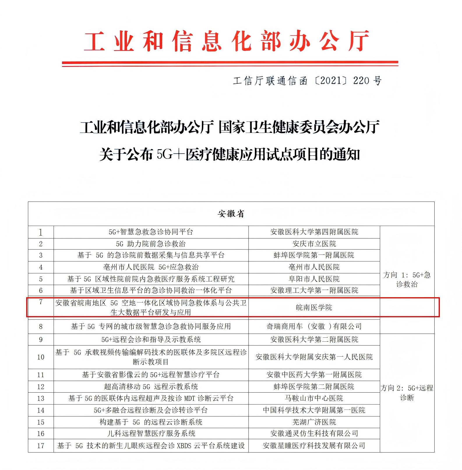 国家“5G+急诊救治”应用试点项目