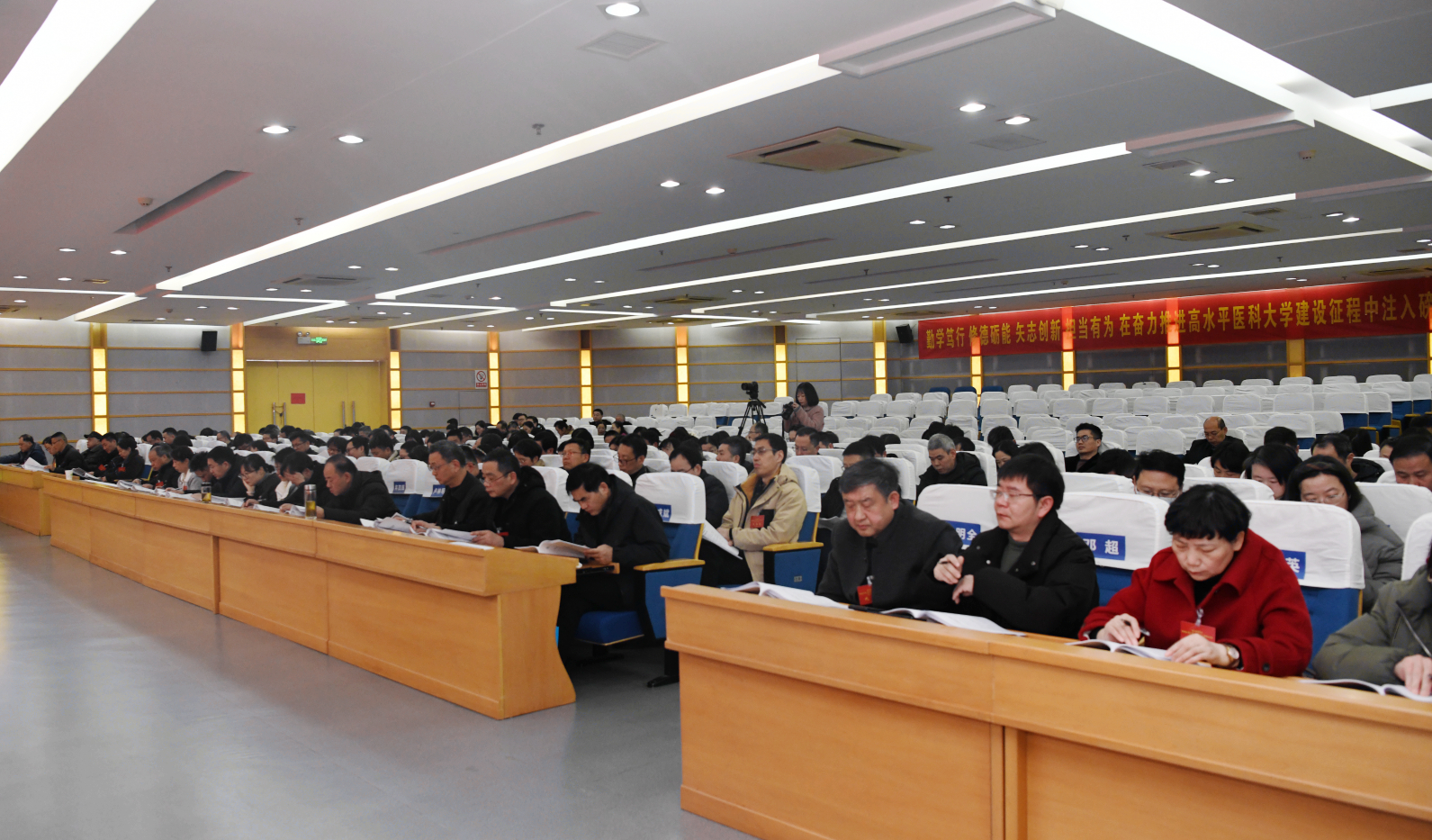 报告号召全校师生医护员工以此次大会为新起点,以习近平新时代中国特色社会主义思想为指导,以立德树人为根本,解放思想、锐意改革,在直面挑战中砥砺前行、在抢抓机遇中奋勇崛起,奋力谱写高水平医科大学发展新篇章!