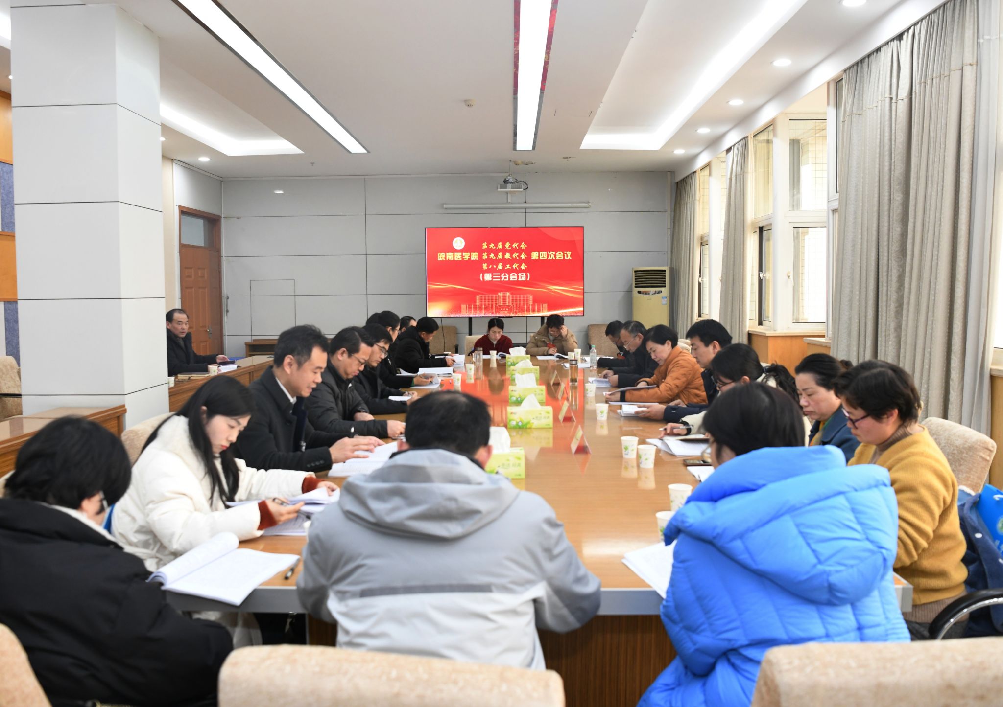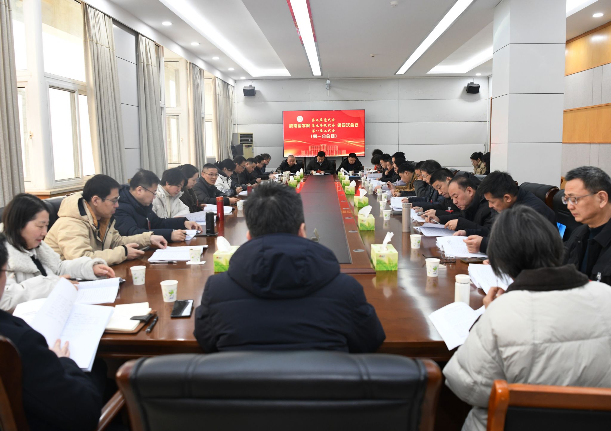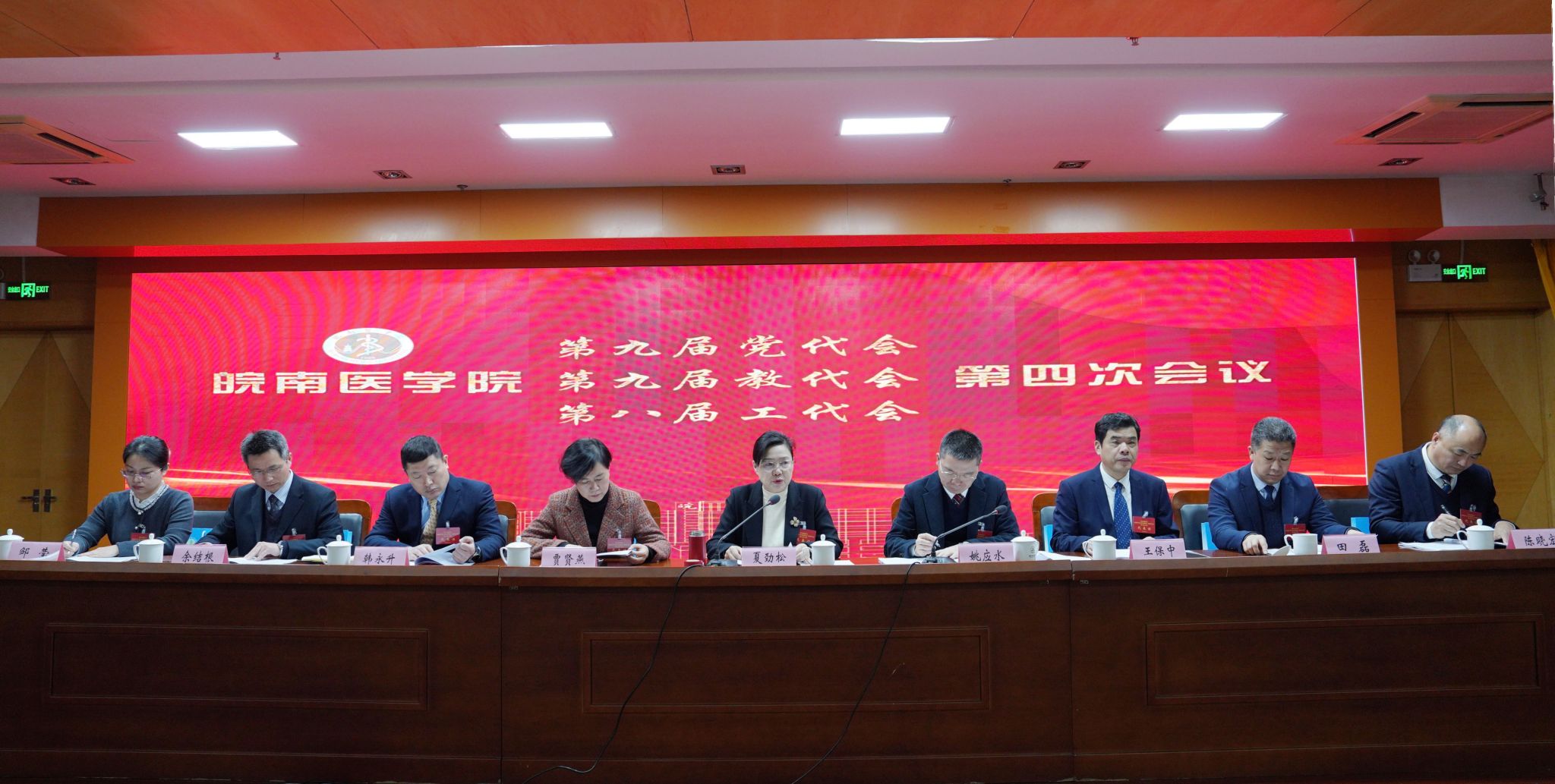同心聚力开新局 砥砺前行绘新篇。1月27日,学校第九届党代会、第九届教代会暨第八届工代会第四次会议在图书信息楼三楼学术报告厅隆重开幕。校党委常委夏劲松、姚应水、贾贤燕、王保中、韩永升、田磊、余结根、陈晓宏、邹莹出席会议。会议代表、列席代表齐聚一堂,共商学校发展大计。