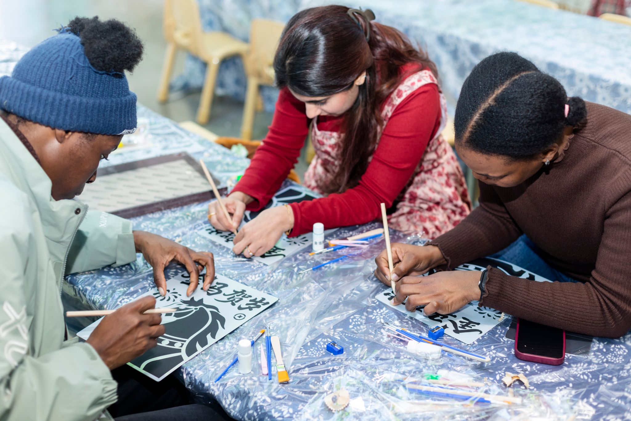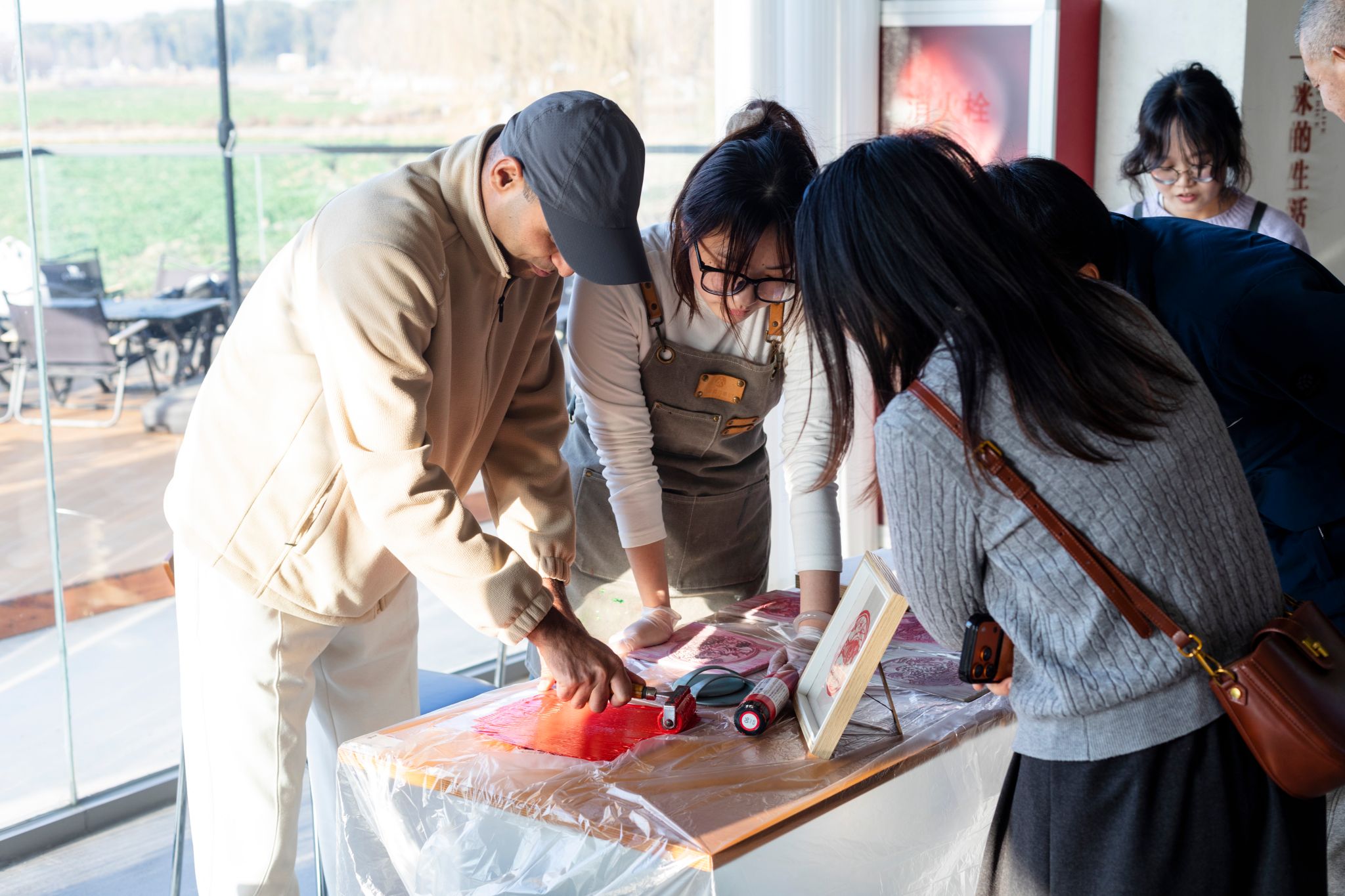 拓印体验区里,国际学生们手持滚轮,蘸取寓意吉祥的朱红印泥,小心翼翼地在生肖碑帖上均匀涂抹,再覆上宣纸轻压拓印。片刻间,一幅幅饱含传统韵味的生肖拓片便跃然纸上,独特的非遗技艺让同学们连连惊叹,纷纷为这份古老的中国智慧点赞。