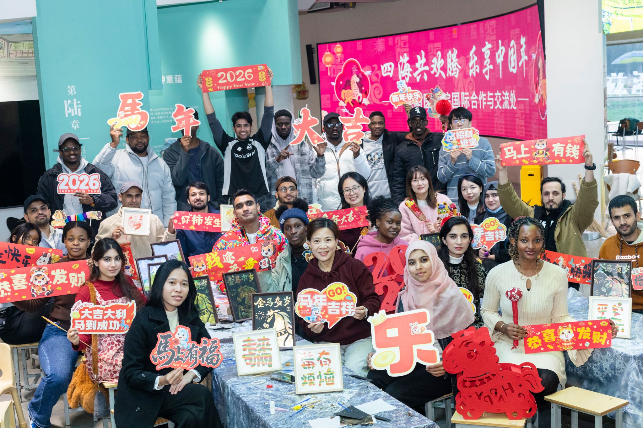 金蛇辞旧岁,瑞马迎新春。为弘扬中华优秀传统文化,让国际学生近距离感受中国春节的喜庆氛围,我校开展“四海共欢腾,乐享中国年”春节文化体验活动。国际学生们欢聚一堂,在欢声笑语中沉浸式体验了一场别开生面的中国春节年俗文化盛宴。