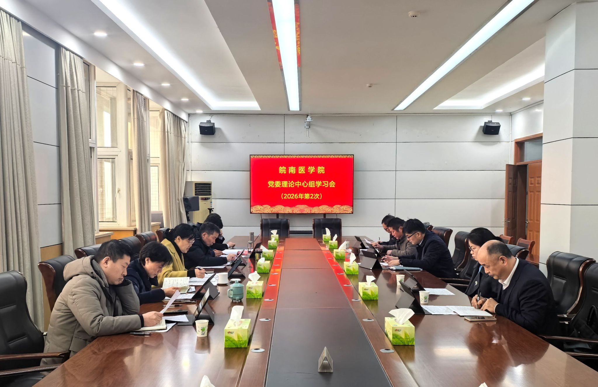2月5日下午,党委书记夏劲松主持召开民主生活会会前专题学习暨2026年理论学习中心组第二次集中学习研讨会,为开好民主生活会打牢思想基础。党委副书记、院长姚应水,党委副书记贾贤燕,党委常委、纪委书记、监察专员王保中,党委常委、副院长韩永升,党委常委、副院长田磊出席会议。校党委中心组其他成员参加会议。