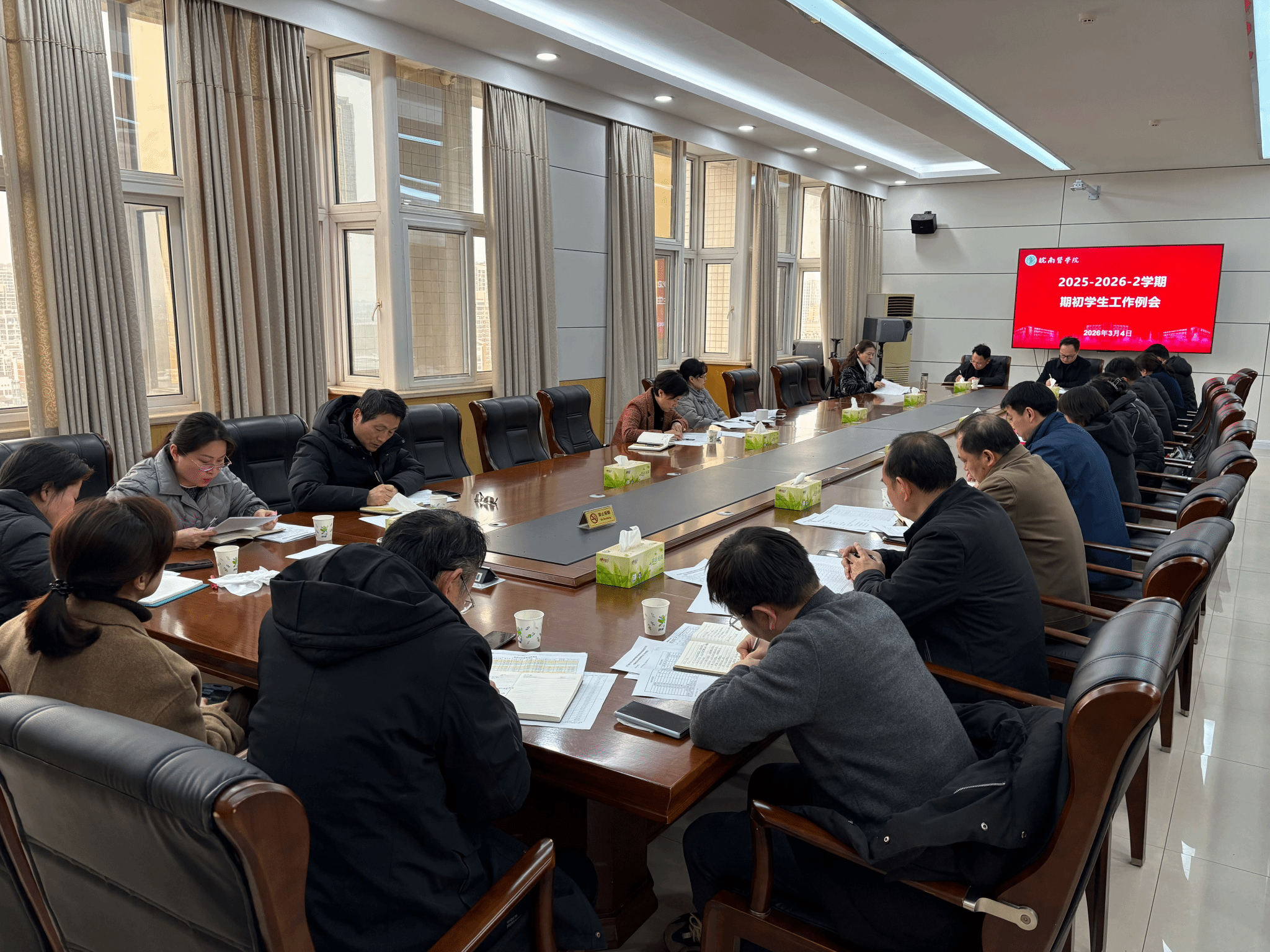 3月4日下午,学校在党委会议室召开2025-2026学年第二学期期初学生工作会议,党委书记夏劲松,党委副书记贾贤燕出席会议。