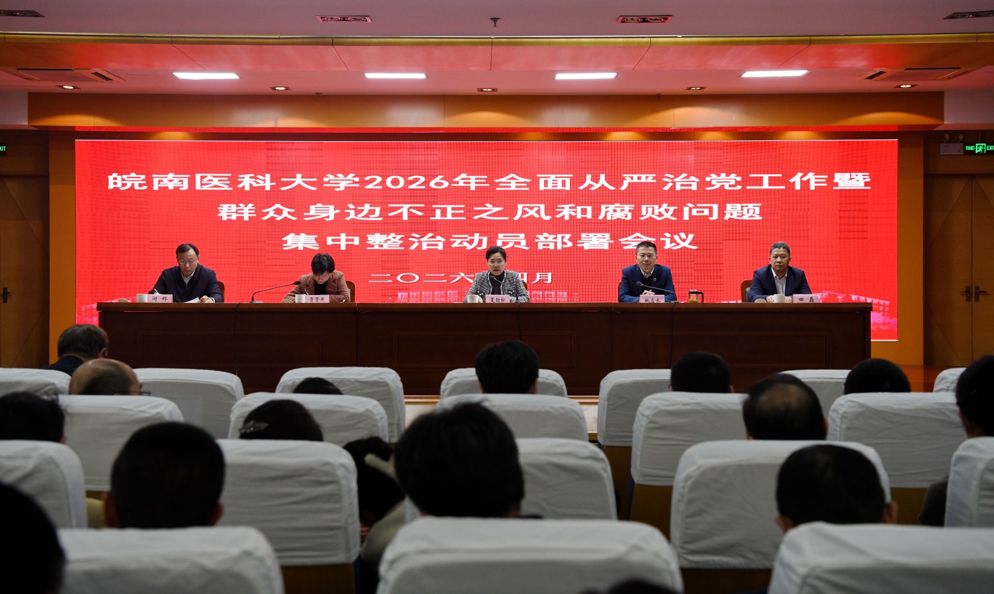 会议传达学习了二十届中央纪委五次全会、省纪委十一届六次全会和2026年全省教育系统全面从严治党工作会议暨深化教育领域腐败整治工作动员部署会议精神,集中通报了上级公开的有关违规吃喝典型案例和学校2025年查处的违规违纪违法案例。会议要求要持续整治群众身边不正之风和腐败问题,巩固好学校“1+3+1+N”集中整治工作成效,深化医保基金管理、后勤餐饮领域突出问题整治,切实提高师生医护员工的获得感、幸福感、安全感。