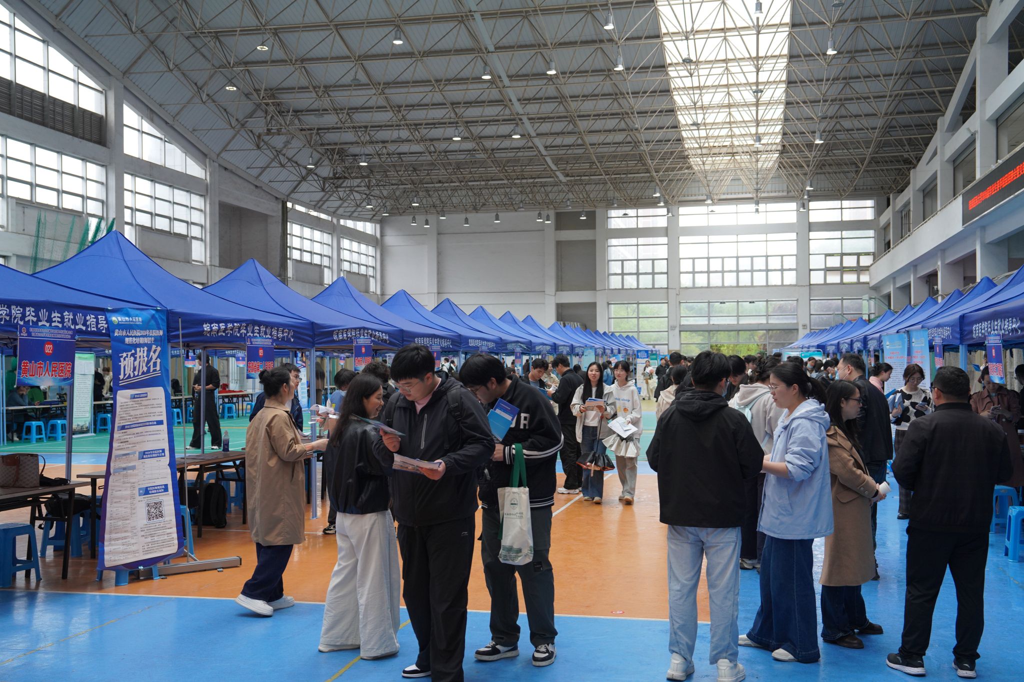 为贯彻党中央、国务院关于高校毕业生就业工作的决策部署,落实教育部和省委、省政府有关工作要求,积极搭建毕业生与用人单位双向选择平台,同时进一步推动住院医师规范化培训政策的落地实施。4月9日,由安徽省卫生健康委员会主办、安徽省住培事务管理中心协办、皖南医科大学承办的2026届毕业生春季校园招聘会暨安徽省2026年住院医师规范化培训宣讲会在我校滨江校区(北区)室内体育馆举行。