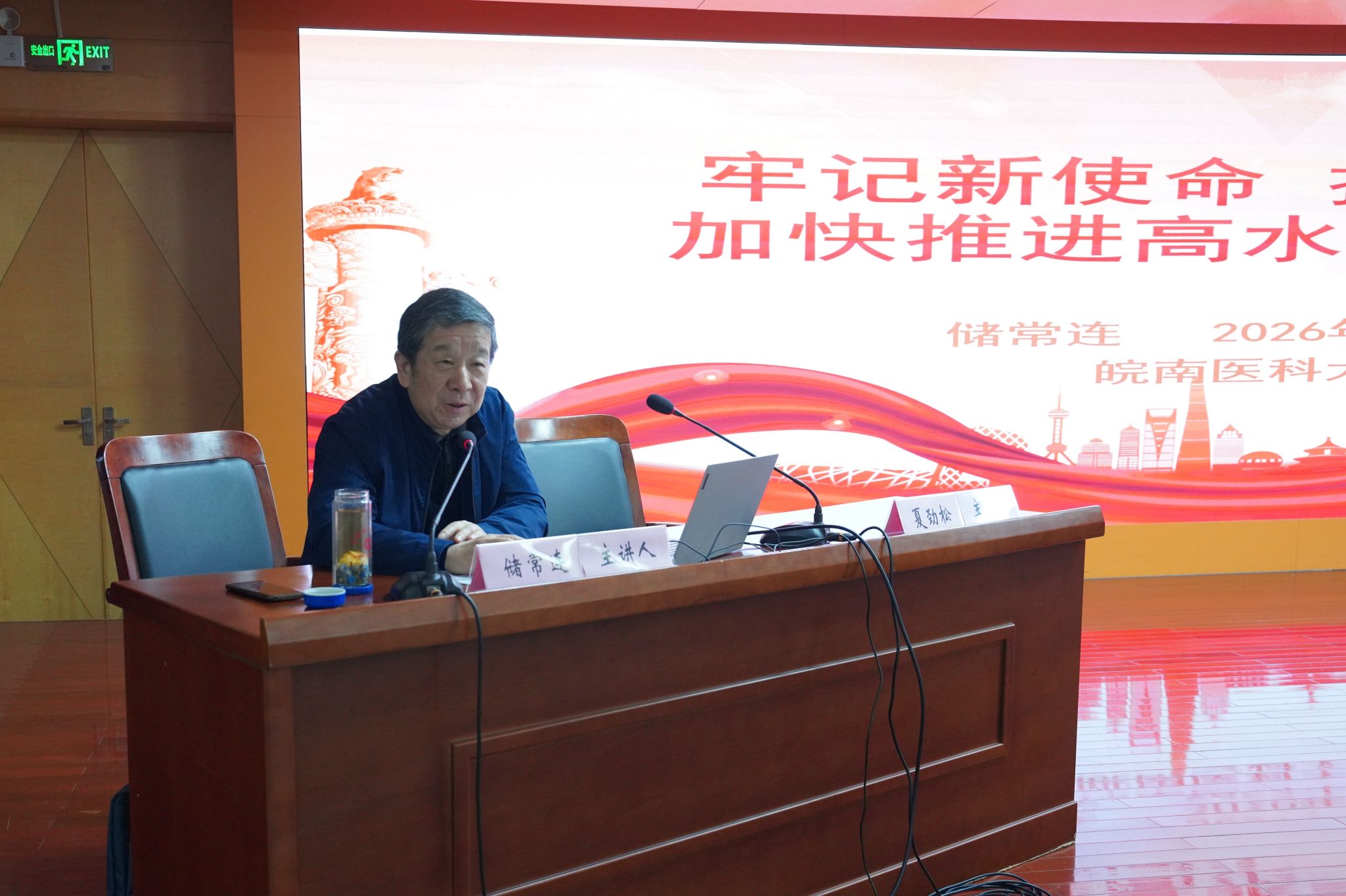 储常连围绕“牢记高等教育新历史使命、把握高等教育新发展趋势、加快推进高水平大学建设”三个主题,系统梳理了我国高等教育发展的阶段性特征和国家政策要求,深入剖析了高等教育发展的未来趋势,并以安徽省高校分类改革演进历程为例,详细解读了不同类型高校在学科建设、人才培养、社会服务等方面的差异化发展路径。最后,他结合我校发展实际,针对性地为我校事业发展规划编制、学科精准布局、内涵提质增效等方面提供了具体建议和实操指引。