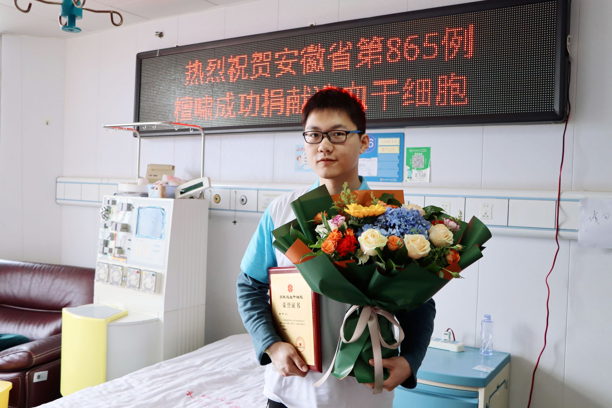 以青春之名,赴生命之约;以研者之心,践大爱之行。4月17日上午,研究生学院2023级内科学专业研究生檀啸顺利完成造血干细胞捐献。经过连续5天动员剂注射,历经4个多小时采集,207毫升造血干细胞混悬液被成功分离,成为我校在校师生第10例、研究生第2例、安徽省第865例造血干细胞捐献者。