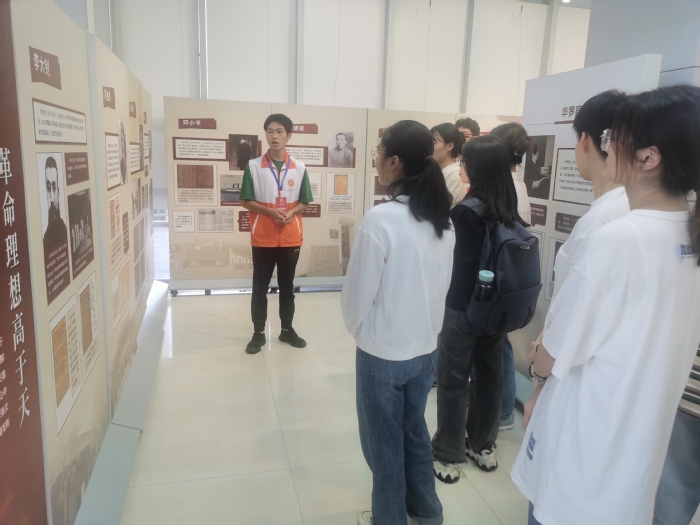 揭牌仪式结束后,与会领导和师生代表一同观展,学生志愿讲解员积极为前来参观的师生进行讲解。大家全神贯注观展,都深深感动于革命先辈的满腔热血、铮铮铁骨和家国情怀。学生讲解员代表琚可表示:“青年大学生要积极传承红色基因,践行青春使命。我作为活动的讲解员,将全力讲好红色家书里的一个个感人故事,让先辈的红色精神发扬光大。”