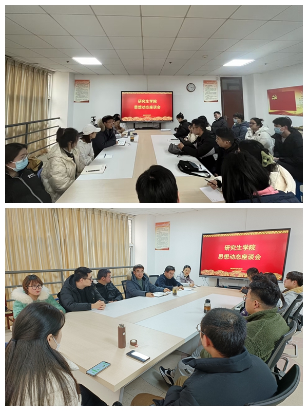 2月29日,研究生学院党委副书记、副院长戴照福主持召开2场学生思想动态座谈会。会前,戴照福向参会代表介绍了更名大学、博士学位授予单位立项建设、审核评估等学校重点工作进展情况。同学们听后深受鼓舞,表示要认真学习、踏实工作,为学校高质量发展贡献青春力量。