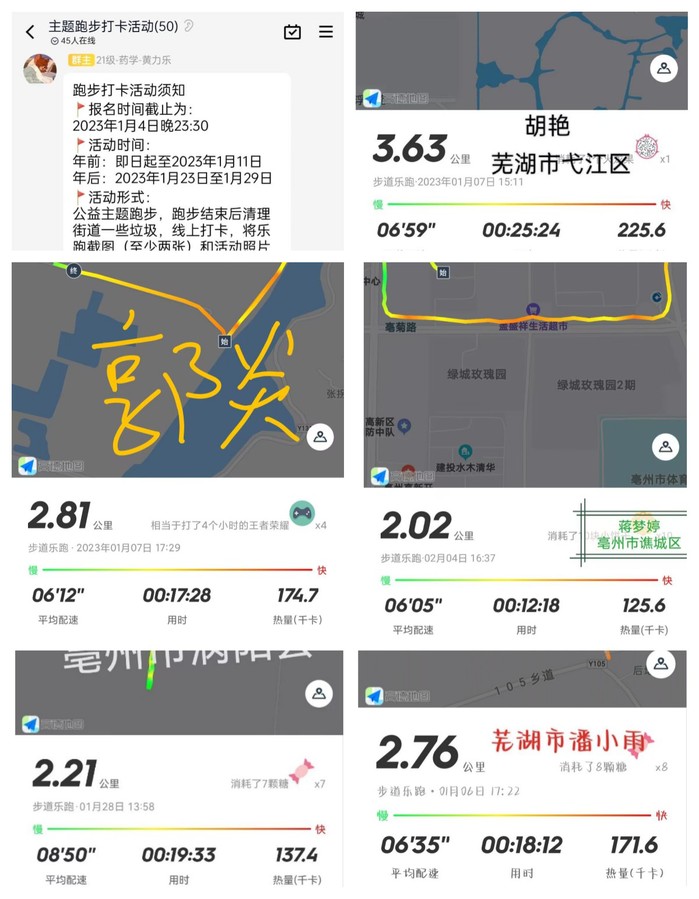 一场主题“乐跑”打卡活动。为增强同学们的身体素质,提高体育锻炼意识,丰富假期生活,药学院青禾志愿服务队发起了一场主题乐跑打卡活动。活动要求同学们在跑步打卡结束后,去做一些公益服务或者理念宣传,如清理街头的垃圾、宣传遗体捐献等。同学们积极报名参加,打卡上传,以实际行动带动更多人参与体育锻炼,呼吁更多人参与到公益事业中。