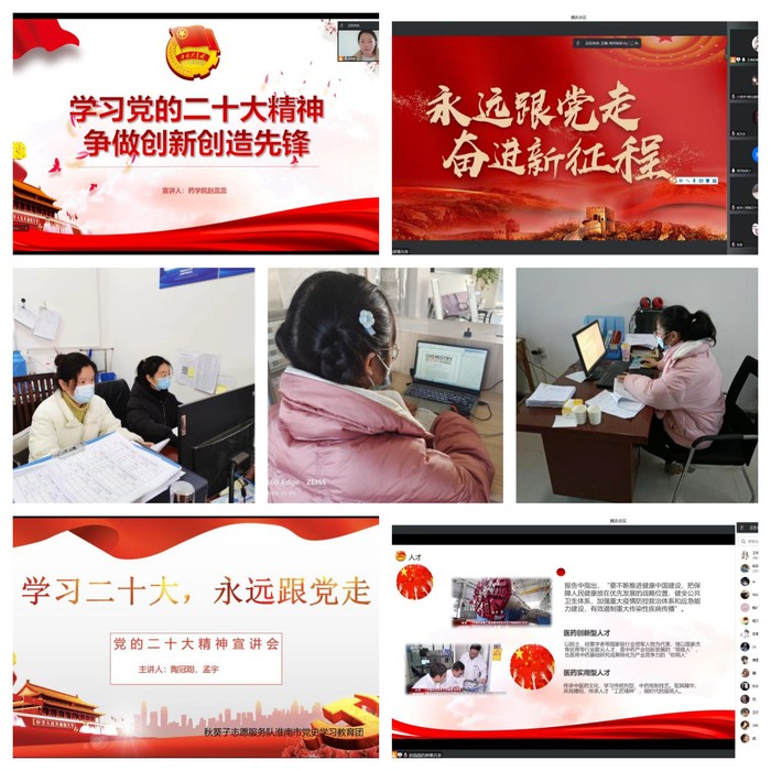 一次党的二十大精神宣讲活动。理论宣讲是学习贯彻党的二十大精神的重要途径,药学院组织党的二十大精神大学生宣讲团成员在家乡开展多场“学习二十大 永远跟党走 奋进新征程”主题宣讲活动,从党的二十大召开的背景、主题、主要内容,特别是青年事业发展方面进行了细致阐释解读,使党的二十大精神深入人心。此外,学院多名同学还积极主动投身政务实践,在工作中认真负责、诚恳踏实,用实际行动践行党的二十大精神。