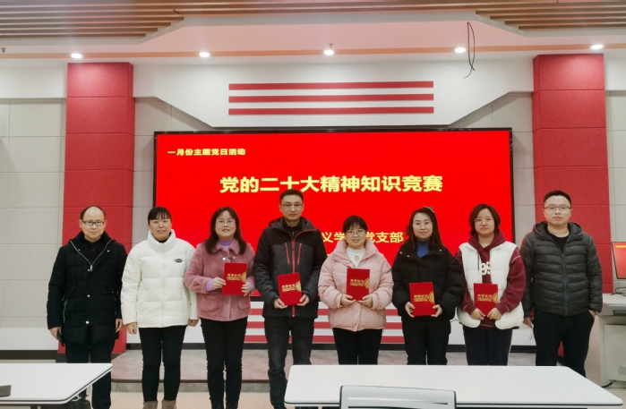 1月13日晚,马克思主义学院党支部在虚拟仿真中心开展一月份主题党日活动,进行党的二十大精神知识竞赛。活动由学院院长、党支部副书记陶庭马主持,全体教工党员参加。