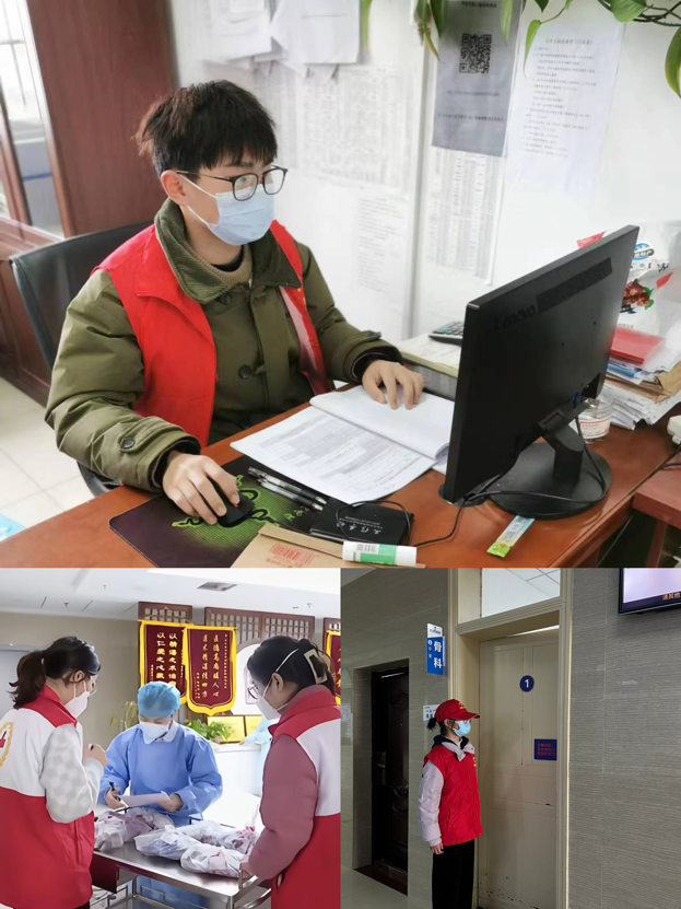在新冠肺炎疫情防控工作中,队员们听从党的号令、响应团的号召,前往家乡当地医院参与志愿服务活动,为构筑疫情防控的人民防线贡献青春力量。队员们协助当地医院人员开展各项工作,如收集疫苗接种情况将其制作成表格,在自主挂号窗口帮助老年人操作,在核酸检测点协助发放试管、条形码张贴、信息登记等,在各医院科室门口维护医院秩序、喊号入室等。虽然是严寒凛冽的冬天,但是志愿服务的队员和受到帮助的人们心里却是暖暖的。