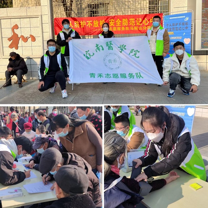 党的二十大报告指出,要推进健康中国建设,把保障人民健康放在优先发展的战略位置。医学影像学院“青禾”志愿服务队注重发挥专业知识技能,将寒假社会实践活动与推进“健康中国”战略相结合,于近期在马鞍山和铜陵分别开展了医学知识科普社会实践活动。