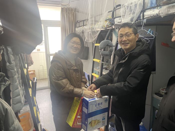 刘晓平一行深入研究生宿舍,每到一处,与研究生深入交谈,详细询问他们近期的学业、科研和临床轮转情况。在了解同学们的近况后,针对不同年级的研究生,学院领导对他们的学习、科研、就业等方面进行针对性地指导,提出了切实可行的意见和建议。学院领导还给留校的研究生送上新春大礼包,并祝福他们新春快乐、学业进步。留校的研究生们纷纷表示,感谢学院的关心和关爱,在寒冷的冬季感受到了来自学校的温暖。虽然新春佳节即将到来,自己还是将一如既往地按照学校和培养单位的要求,按质按量完成临床轮转、毕业论文等各项培养工作。