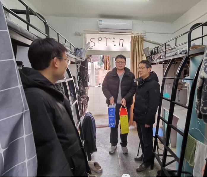 大寒至,温暖行。1月20日下午,研究生学院党委书记、院长刘晓平,党委副书记、副院长戴照福等一行前往青年公寓慰问寒假留校研究生,为研究生送去新春的祝福。