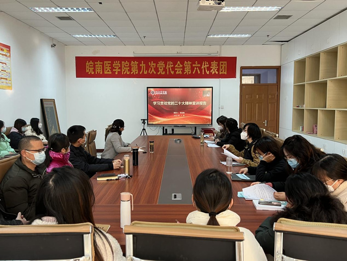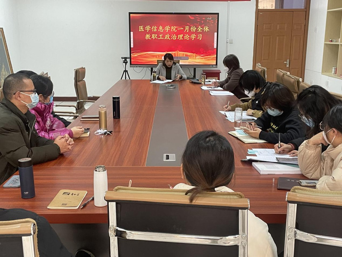 1月10日下午,医学信息学院在学院会议室召开本年度第一次全体教职工政治理论学习暨期末总结会。会议由医学信息学院党总支书记、副院长刘影主持,邀请马克思主义学院邓会敏副教授作“学习贯彻党的二十大精神”宣讲报告,全体教职工以线上线下相结合形式参加学习。