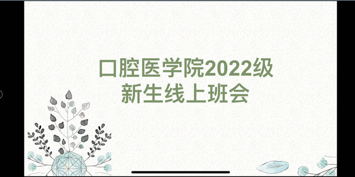 为确保口腔医学专业2022级新生顺利入学,9月1日上午,口腔医学院通过腾讯会议召开新生开学前线上主题班会。会议由口腔医学专业新生辅导员张晋艳主持,2022级全体新生参加。