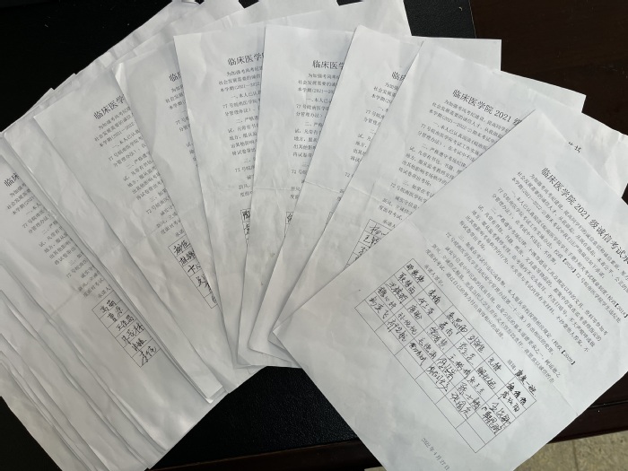 5月6日-13日,2021级召开诚信考试主题班会,认真学习《皖南医学院考试工作实施办法》《皖南医学院学生违纪处分管理办法(修订)》等相关文件,开展诚信承诺书签名活动。每位同学在诚信承诺书上签名,承诺要尊重知识,严格遵守考试规章制度,杜绝一切考试作弊行为,做一个讲纪律、有责任的大学生。