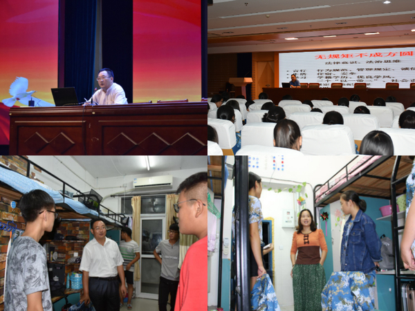 一、加强对新生的学习教育。9月11日晚,护理学院党委书记、副院长李军华,党委副书记吴梅和辅导员走访学生宿舍,在宣传相关学生管理规定的同时,鼓励大学生实行“自我教育、自我管理、自我服务、自我监督”。9月14日和19日晚,李军华分别给2017级本专科新生作校规校纪专题教育讲座。