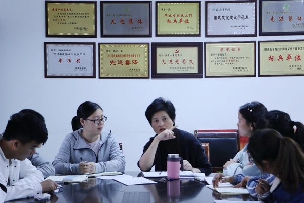 最后,崔晓霞代表学院感谢学生代表们的积极思考、建言献策。她很欣慰临床学子们不是“两耳不闻窗外事,一心只读圣贤书”,能够主动关注十九大召开、脱贫攻坚和医改政策等社会热点,积极关心学校和学院的发展建设,充分体现了当代大学生的时代感与使命感。同时,她也引导同学们学会用辩证发展的眼光分析问题、解决问题,变被动为主动,努力提升适应能力、培养创造性思维。学院将会把同学们的意见、建议梳理上报,师生共同努力,用实际行动助力学校发展,献礼党的十九大。