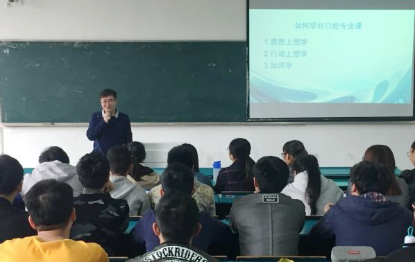 为增强2015级口腔医学生对口腔专业的深入了解,就如何学好口腔医学专业课程,口腔医学院在滨江校区2204教室举办了一场专题讲座。讲座由口腔医学院修复学教研室邓超主讲,2015级辅导员张晋艳主持,学院2015级全体学生到场聆听。
