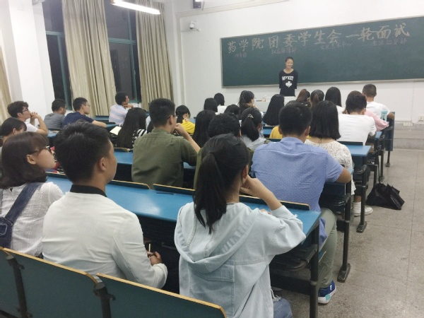 9月初,药学院团委通过线上官方微博、微信和线下宣传单的方式,让全体新生全面直观地了解了学院团学组织的概况。随后,药学院团委于 9月19日、9月26日开展了学生会两轮招新面试工作。药学院团委副书记刘书琴、金鑫、唐浩如等作为评委应邀出席。在面试现场,同学们分别进行了简短精彩的自我介绍后,评委们针对每位同学提出相应问题并对面试进行了详细的记录。最终,评委们秉承公正公平原则,遴选出87名新生加入了学院团学组织。