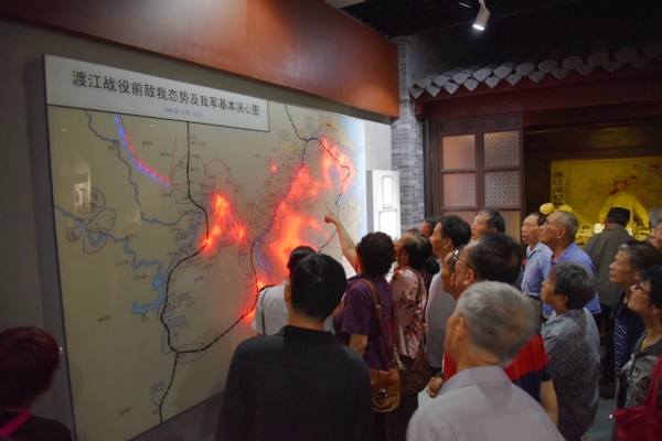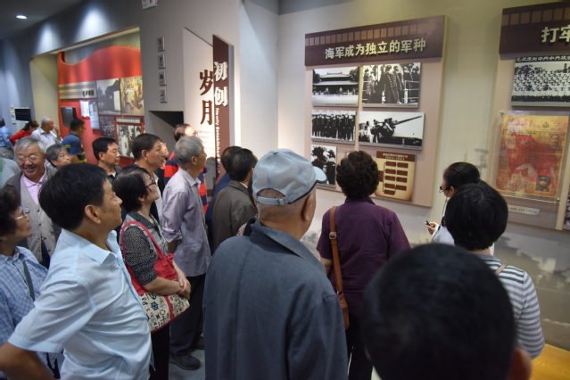 中国人民解放军海军诞生地纪念馆位于江苏省泰州市境内,是全国进行爱国主义教育的重要基地,建筑形似军舰,新颖别致。在讲解员的带领下老党员从近代沧海、白马建军、威震海疆、发展壮大、鱼水情深等五个方面了解海军发展壮大的光辉历程,感受海军英雄感人的革命精神。党员们一边聆听讲解,一边观看展品、图片资料、文字记载等,尤其是渡江战役相关图片资料,引起了老同志浓厚的兴趣,大家热烈讨论当年长江芜湖段的战斗情况。一幅幅珍贵的历史照片、一幕幕感人的革命场景强烈地震撼着每个人的心灵。“听党指挥忠于党,能打胜仗打硬仗,作风优良为人民,爱舰爱岛爱海洋”的海军精神更是铿锵有力,令人振奋。老党员们不禁谈论起南海争端、钓鱼岛事件等,为祖国强大的海军军事力量感到无比骄傲和自豪!