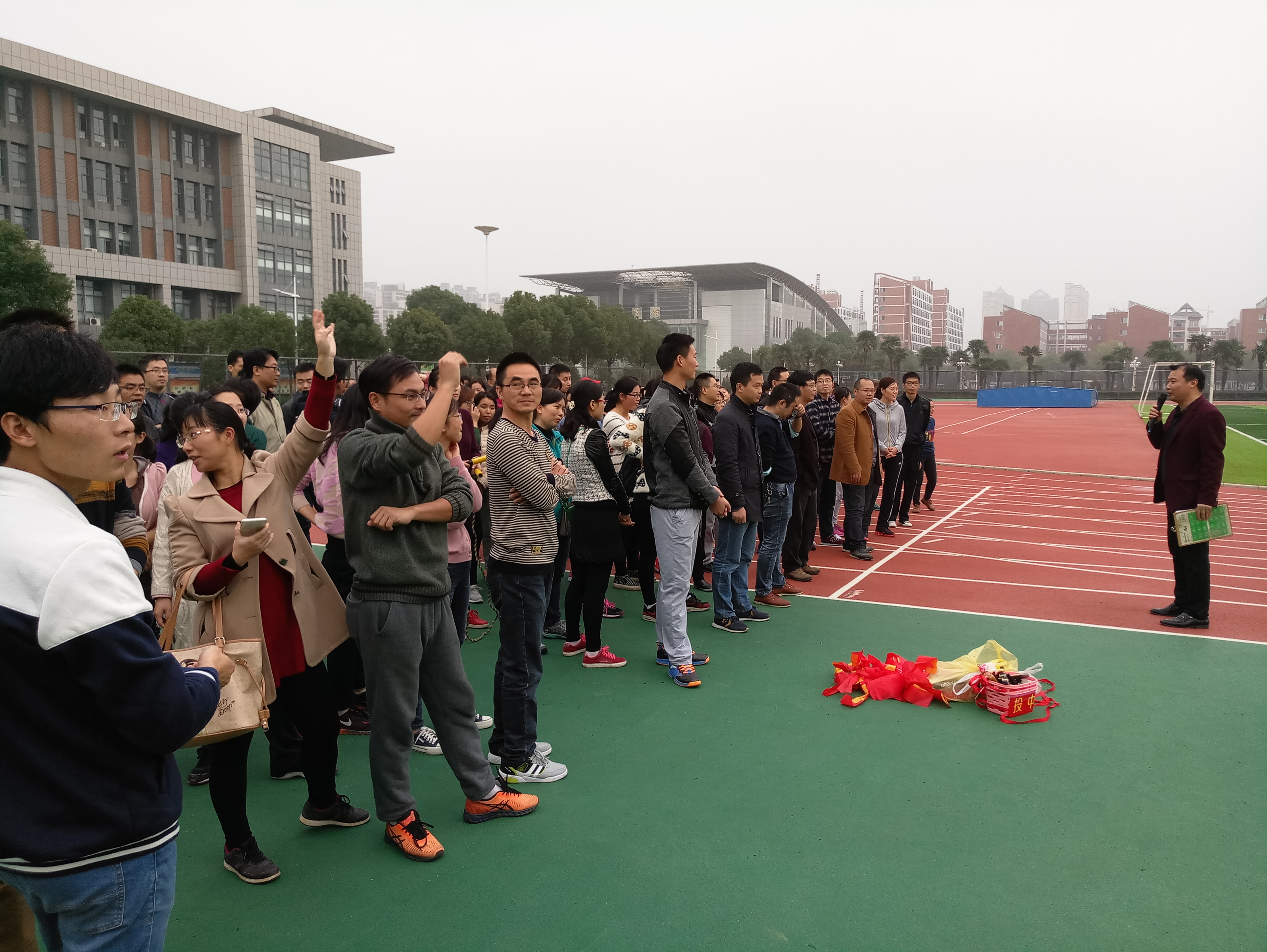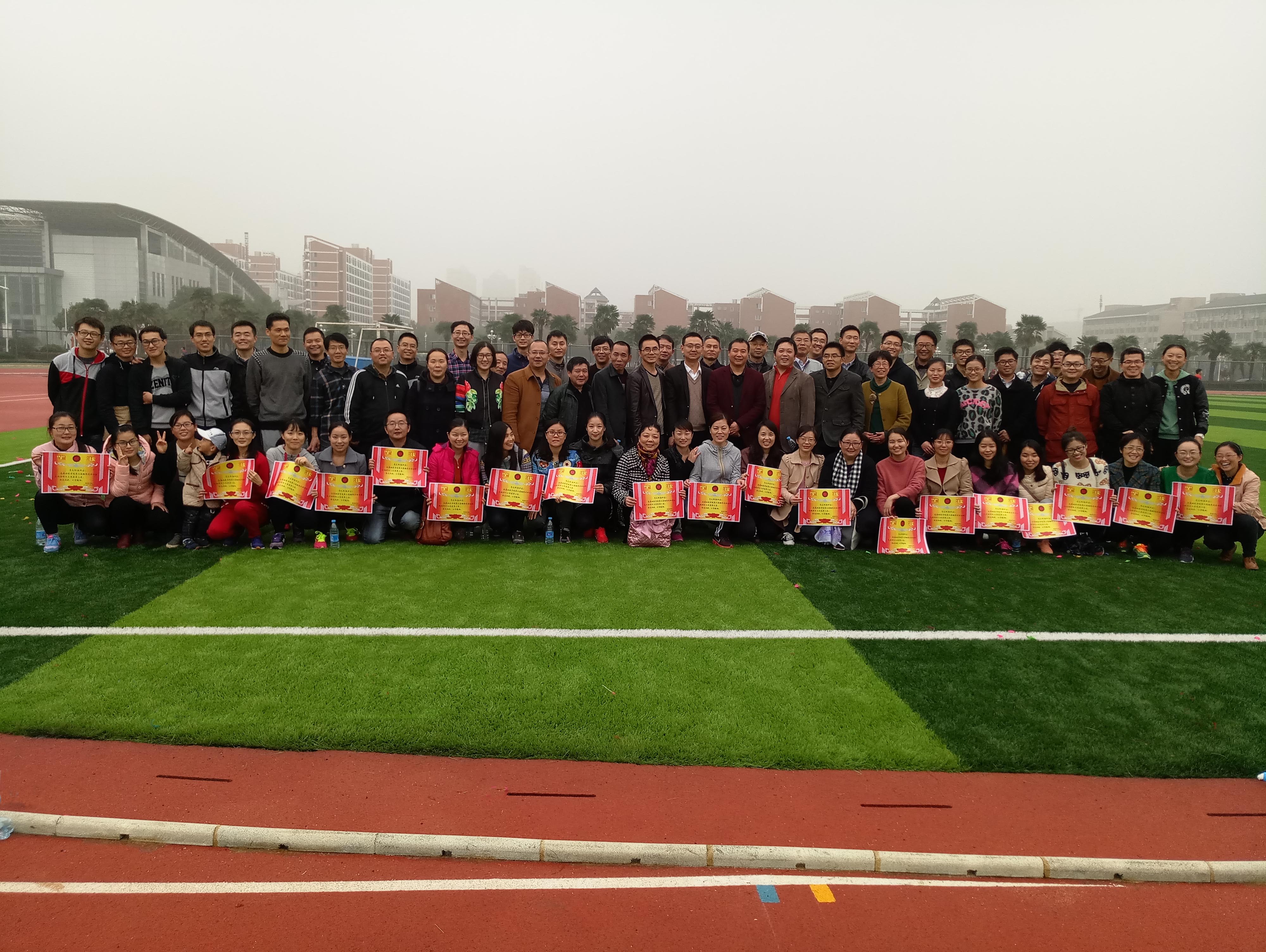 为促进广大教职工积极参与健身运动,倡导“快乐工作,健康生活”,活跃我院文化工作氛围,提高大家的集体荣誉感,增强各教研室、各学科及学院凝聚力,11月20日下午,基础医学院在滨江校区体育场举办了学院第二届教职工趣味运动会。来自12个党支部、教研室及2个实验中心的100多名教职工参加此次运动会。