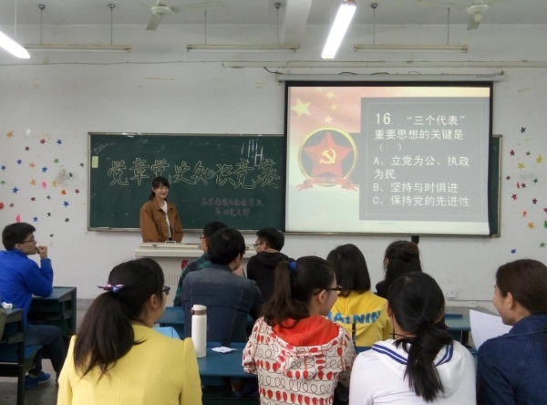 时值中国共产党建党95周年之际,为更好学习党的基本理论知识,回顾先辈风采,医学影像与检验学院学生第四党支部于2016年4月16日下午在东教201室举办党章党规党史知识竞赛。学院学生第四党支部全体党员和部分入党积极分子参加本次比赛,党支部书记徐梦琪出席活动。