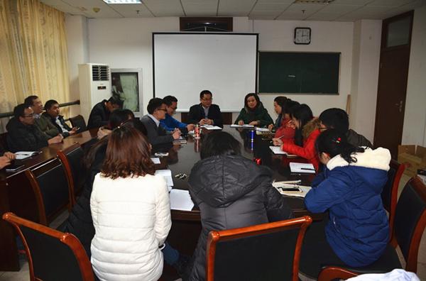 首先,文育锋针对学期末专业学科的考试情况、试卷分析、考场监考情况做了通报。其次,着重对寒假期间国家基金的申报工作进行了再次动员和部署,并对下学期教学任务、实验准备、假期科研项目实施、人才培养和人事工作、学科建设、项目和质量工程建设等做了部署;副院长黄月娥传达了学校教学工作例会会议精神,总结了本学期的教学工作情况,布置了下学期开学教学准备工作。接着,党总支书记朱丹传达了省教工委书记王光虎做的《准则》和《条例》辅导报告的精神,并针对假期师生安全工作进行了部署。