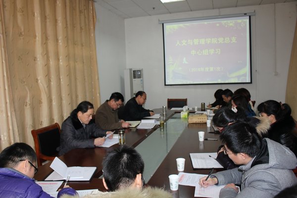 为进一步深入贯彻落实“三严三实”要求,按照学院党总支工作计划安排,2016年1月18日下午,人文与管理学院党总支中心组召开了由党总支委员、各党支部书记、教研室主任、学科点负责人、秘书参加的2016年度第一次扩大学习会议,学院党总支书记王金权主持学习会。
