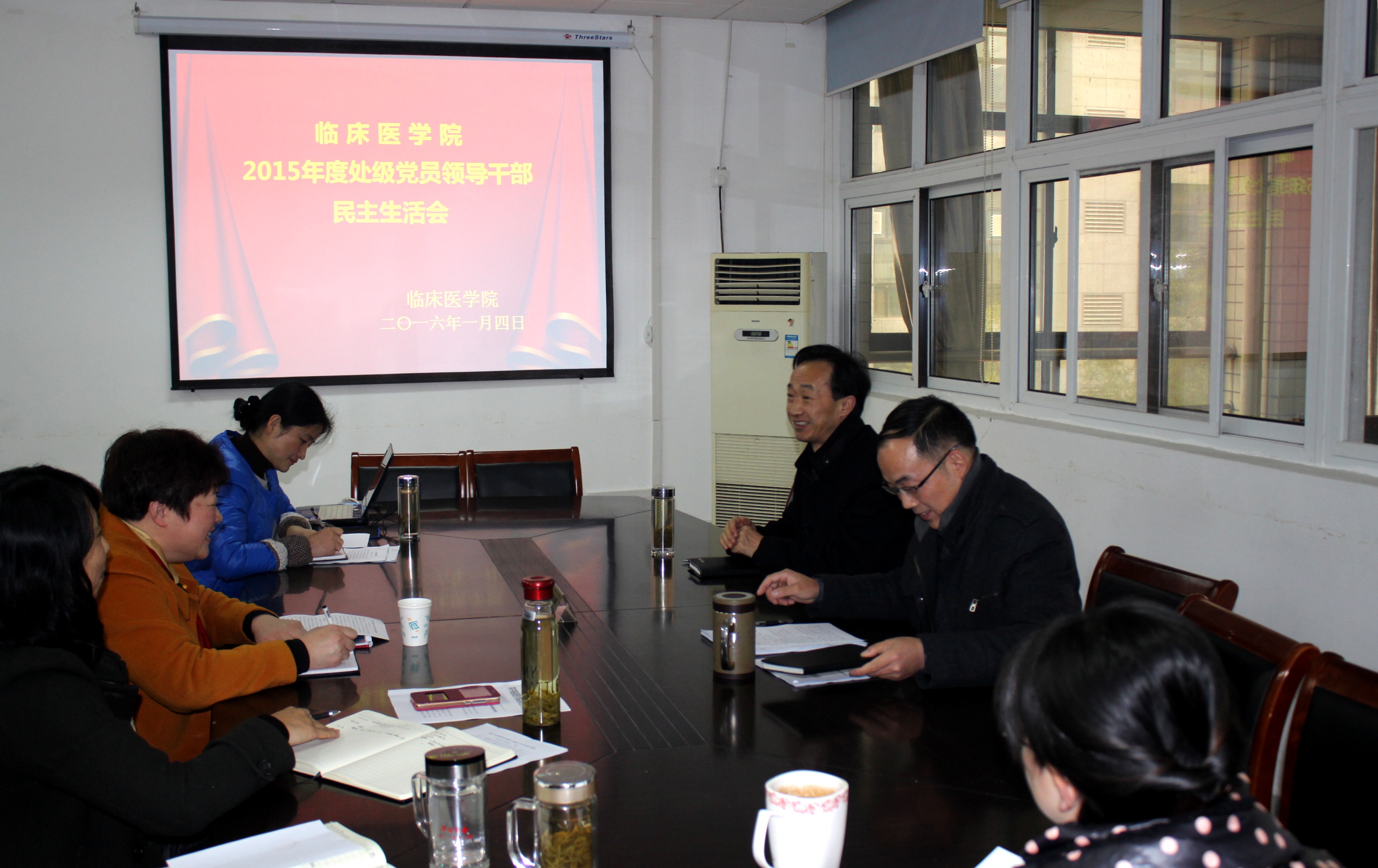 根据学校党委工作要求,临床医学院党总支于1月4日下午在学院会议室召开了2015年度学院处级党员领导干部“三严三实”专题民主生活会。校党委委员、组织部部长方国庆同志莅临会议并指导,临床医学院党总支处级党员领导干部参会、非处级干部的党总支委员列席会议,会议由学院党总支书记戴睿主持。