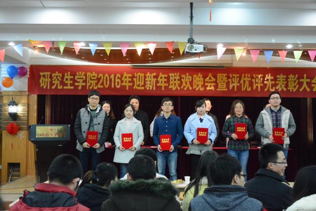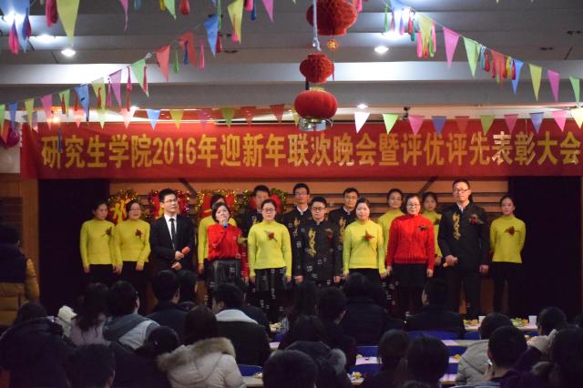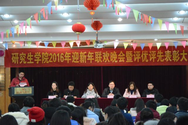 1月9日晚,研究生学院2016年“猴驻青春 医路绽放”迎新年联欢晚会暨评优评先表彰大会于赭麓校区七楼报告厅隆重举行。研究生学院师生欢聚一堂,共同分享开拓进取的喜悦与欢乐。