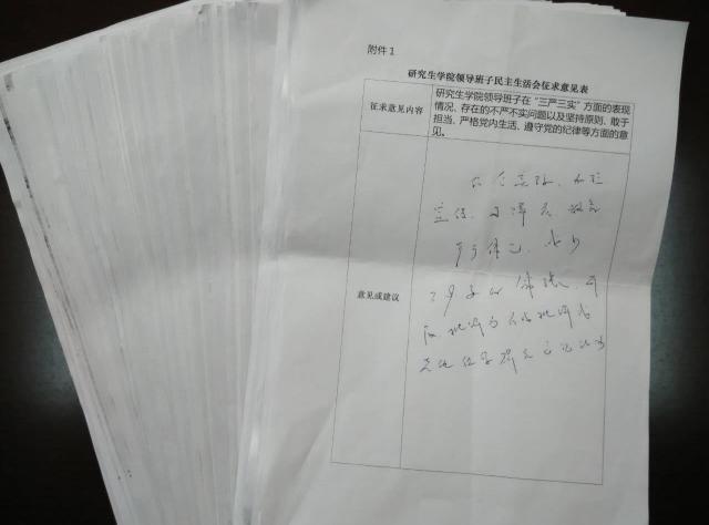 为开好2015年度处级党员领导干部民主生活会,研究生学院党总支高度重视,认真安排,紧紧围绕“三严三实”要求,紧扣“三聚焦三查找三确保”主线,通过召开座谈会、个别谈话、设置征求意见箱、发放征求意见表等方式,听取意见、查找问题,扎实做好会前准备工作。